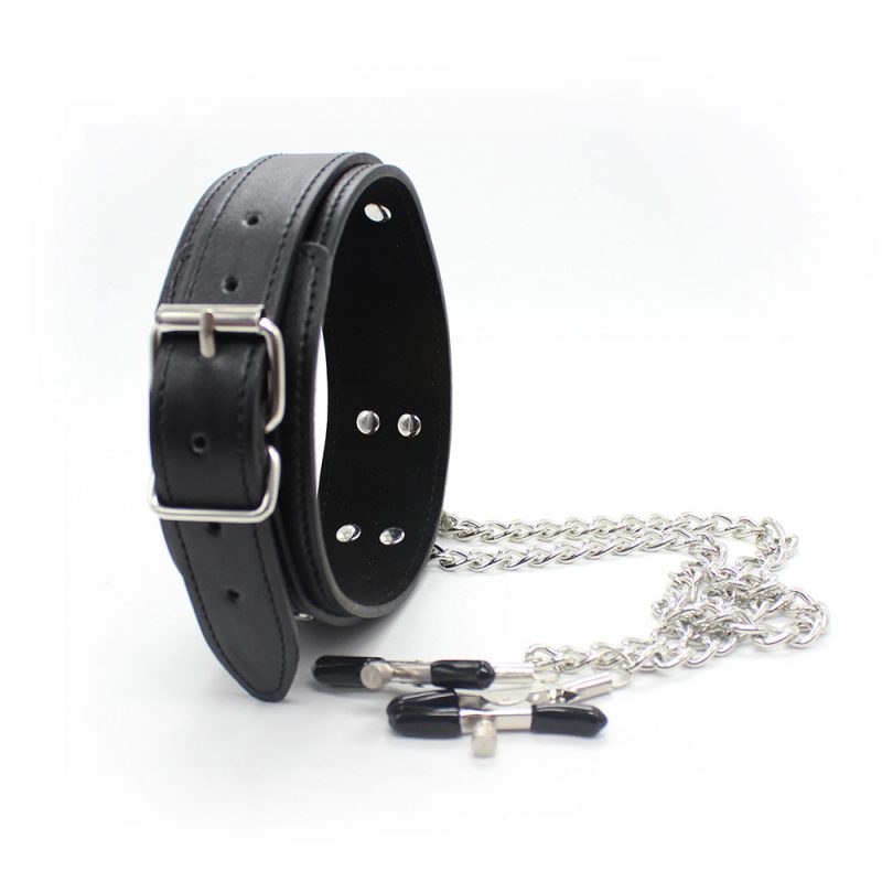 D Ring Bondage Collar With Nipple Clamp