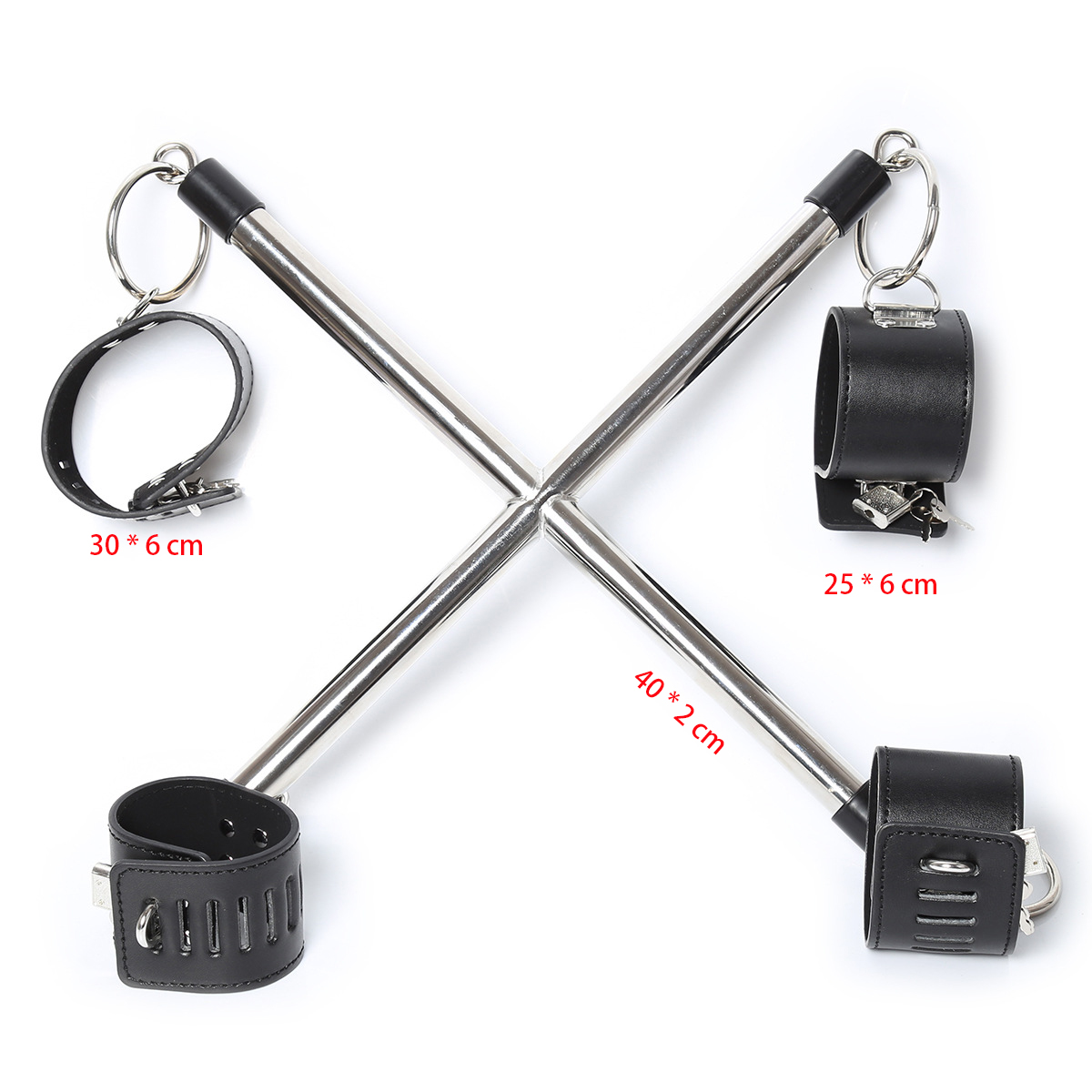 Material: PVC/LeatherThe Hogtie-X is a cross-bar restraint that allows you to put your partner in an immobile position. You can either place it in the front or in the back, however you wish to position them. This is ideal for partners who not only don’t want to deal with any complicated rope tying but also want that visual appeal and durability of steel during their bondage sessions. The restraints are secured directly to the bar for extra security.
