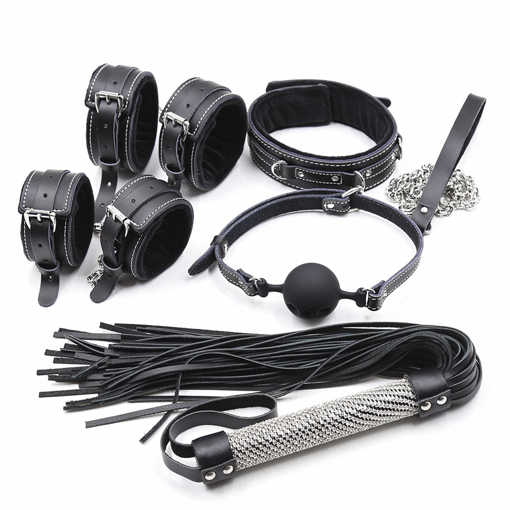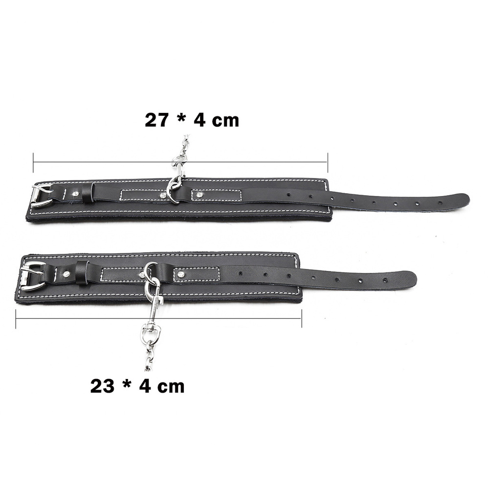 Bondage Kit For Beginner – Black Genuine Restraints & BDSM Play Set, include Silicone Ball Gag,Ankle Cuffs2, Hand Cuffs2,Whip1; Collar1.Material: Real LeatherColor: BlackCollar Size: 41.5 * 4.0 cm/16.35 * 1.58 inchWrist Size: 23.0 * 4.0 cm/9.06 * 1.58 inchAnkle Size: 27.0 * 4.0 cm/10.64 * 1.58 inchFlogger Size: 51.0 cm/20.09 inchGag Size: 40.0-59.0 cm/15.76-23.25 inchPackage: OPP Bag