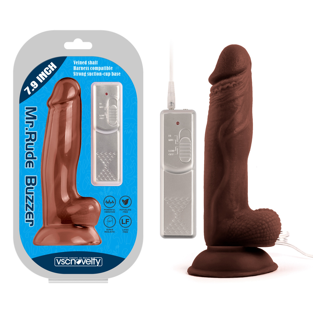 This handsome Mr. Rude Buzzer is out to impress. Not only is it the proud owner of 6 erect inches and bulging balls, it buzzes into action with powerful vibration modes. Plus, its suction-cup base and wired controller mean play time just got very exciting indeed.Its sensual shape features a host of realistic details including balls at the base, a veiny shaft and a circumcised head for intensely authentic sensations. Combine with the easy-to-use controls and suction base for the option of hands-free play and prepare for the lifelike ride of a lifetime.Its powerful vibration modes are orgasmically easy to explore. Simply scroll through the settings on the wired controller to find the function or combination that works for you.Don’t do all the work though. Hand the controller to your partner and encourage them to take charge of your pleasure, telling them what feels good through the language of moans and ‘oooh’s.Top tip: Don’t forget to lube up for extra-slippery sensations.Key Features:Realistic dildo vibrator with wired controller for lifelike solo or partner playAmazingly lifelike and hand-finished for perfect detailingHarness compatible with suction-cup base for partner or hands-free adventuresExtra-strong suction cup for thrilling hands-free or pegging playMaterial:Phthalate-Free PVCColor:Black/Flesh/BrownPower:3 AA Battery(Not included)Length:7.9 inchesInsertable:6 inchesDia:1.5 inchesPackaged Size:30.5×17.5×8 cmPackaged Weight:0.49kg