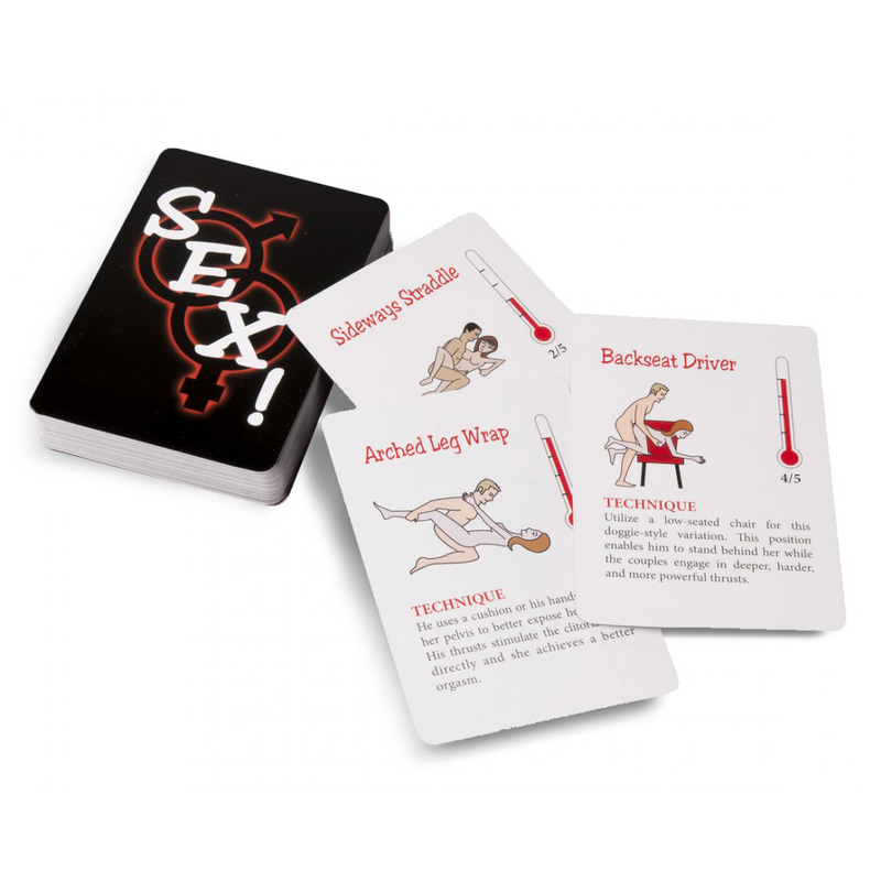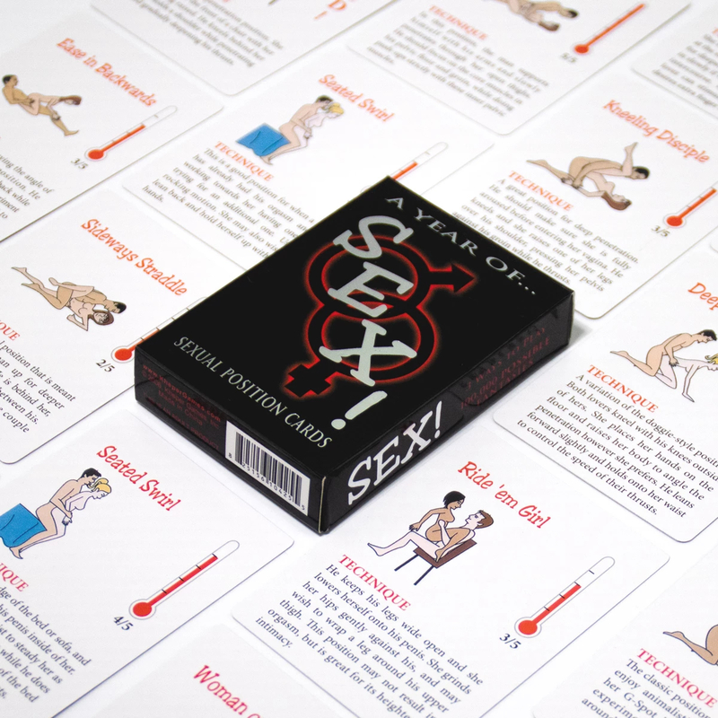 A year of sex awaits in this decadent deck of cards! You??ll find 50 different cards with Kama Sutra positions. Use the cards as positional references or play one of the three games to build your fantasy! Each card offers a sex position illustration, technique instructions, and a challenge rating of 1-5 ?? with 5 being the most intensely orgasmic!