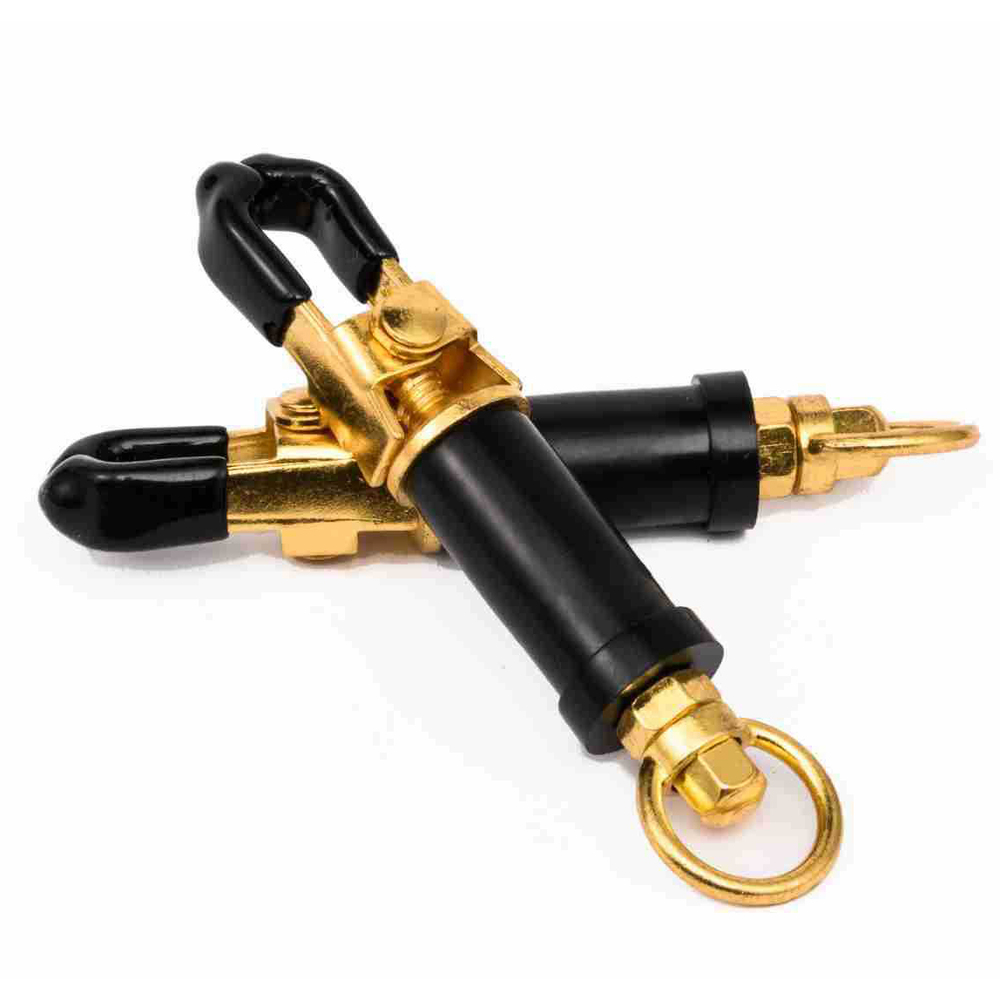 The Bondage Ring Barrel Clamps provide you with the framework for a wide array of torments. These heavy-duty clamps feature a dangling ring at their base that affords you countless bondage options. Let the rings hang and jingle as your sub moves around. Attach a chain from one ring to another that…