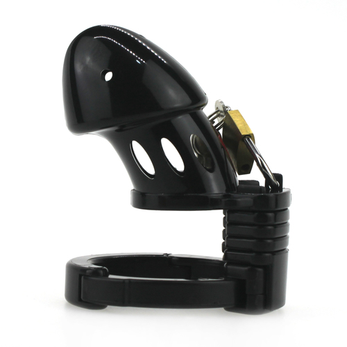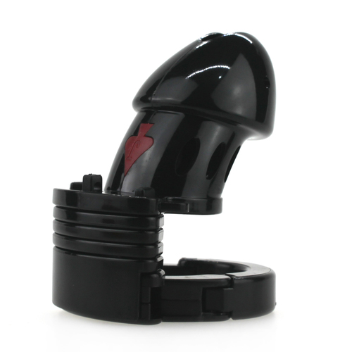 The new, innovative design of the Black Jack Adjustable Locking Male Cock Cuff Chastity Device consists of a ratcheting cock cuff and several spacers which can be added for extra length. The guide pins hold the spacers allowing you to create a length that works best for training your boy toy.The actual cage length is 3 1/4″ in length with an inner diameter of 1 1/4″. The spacers allow you to create a total length of 4″ to 5″ in approximately 1/8″ increments.The multi-position cock cuff is a fantastic new style of cock cuff for chastities which is a bit of predicament for your boy toy. The cuff can be adjusted for size behind your slave’s cock and balls, then using the locking pin, the ratchet style cuff is locked into place before placing any spacers or the actual cock cage on. It’s easier than a solid cock cuff to put on because you don’t have to squeeze the balls and scrotum through it. However, it can be tightened much tighter than a normal, non-adjustable cock cuff, meaning you can really put the squeeze on your man! (Maybe that’s more of a pre-dick-ament!) The cock cuff can be adjusted from a comfortable 2″ in diameter (6″ in circumference) down to a tiny 1 1/4″ in diameter (4″ in circumference)!Color: Red/Black/Clear