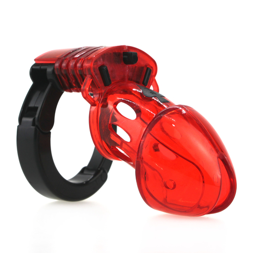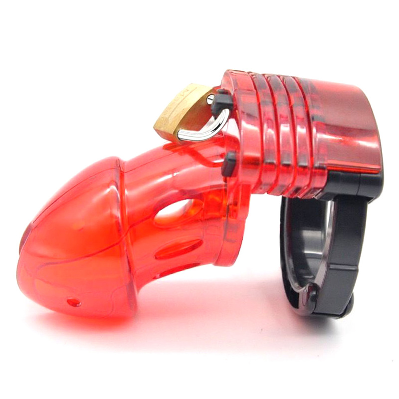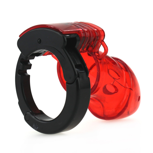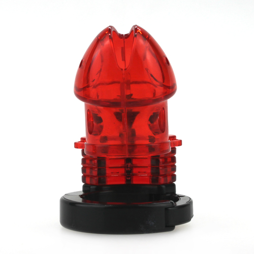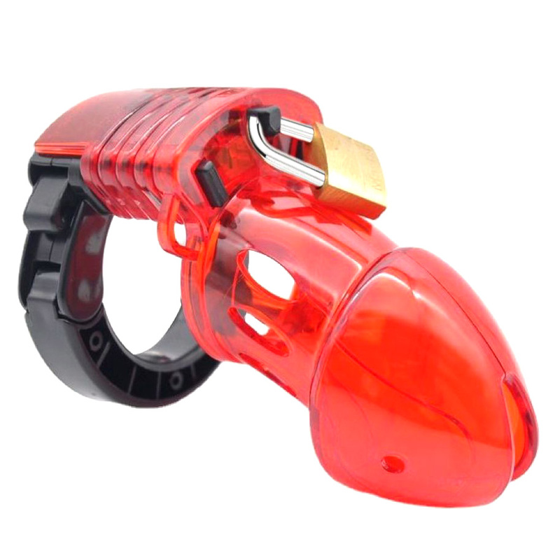 The new, innovative design of the Red Jacked Adjustable Locking Male Cock Cuff Chastity Device consists of a ratcheting cock cuff and several spacers which can be added for extra length. The guide pins hold the spacers allowing you to create a length that works best for training your boy toy.The actual cage length is 3 1/4″ in length with an inner diameter of 1 1/4″. The spacers allow you to create a total length of 4″ to 5″ in approximately 1/8″ increments.The multi-position cock cuff is a fantastic new style of cock cuff for chastities which is a bit of predicament for your boy toy. The cuff can be adjusted for size behind your slave’s cock and balls, then using the locking pin, the ratchet style cuff is locked into place before placing any spacers or the actual cock cage on. It’s easier than a solid cock cuff to put on because you don’t have to squeeze the balls and scrotum through it. However, it can be tightened much tighter than a normal, non-adjustable cock cuff, meaning you can really put the squeeze on your man! (Maybe that’s more of a pre-dick-ament!) The cock cuff can be adjusted from a comfortable 2″ in diameter (6″ in circumference) down to a tiny 1 1/4″ in diameter (4″ in circumference)!Color: Red/Black/Clear