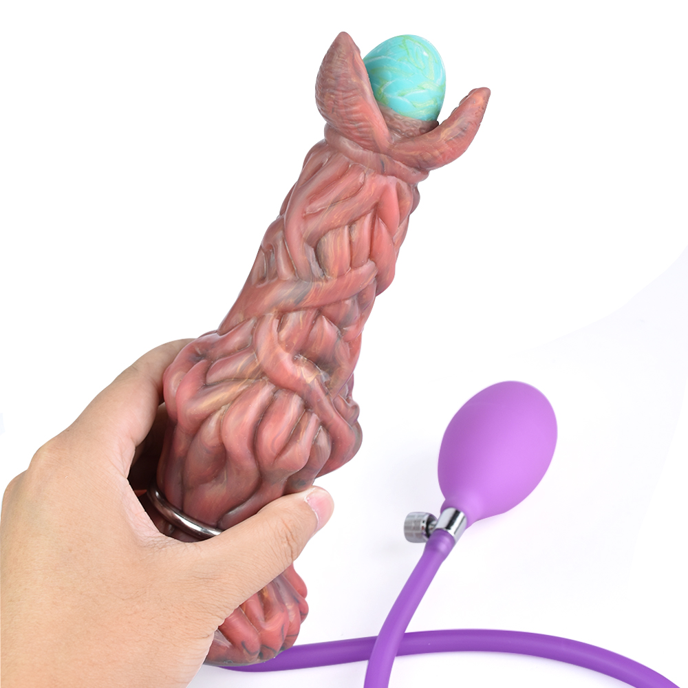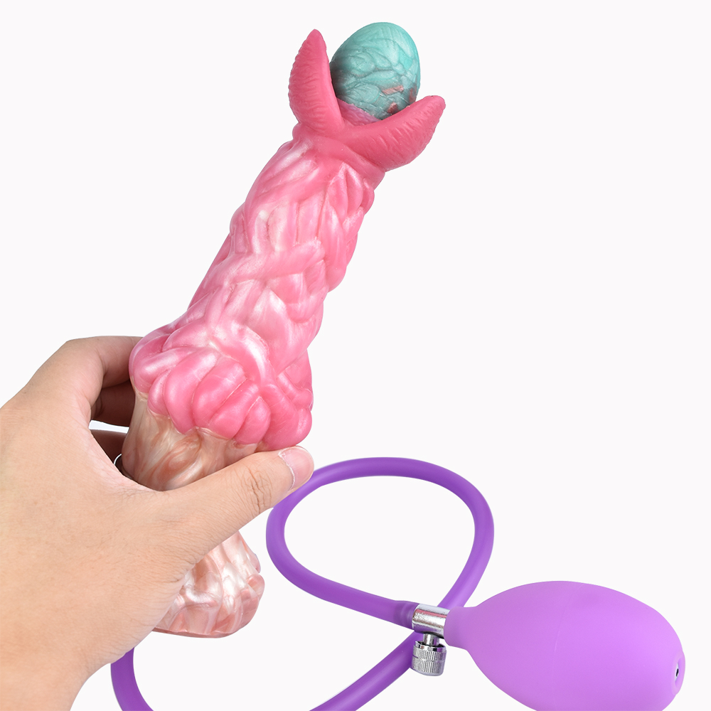 Appearance Design This new dildo type has a unique color and complex texture as well as a mouth-like opening with foldable lips. The unique hollow design can be used for inserting eggs and inflating to bring new types of fun to the anus/vagina and complete ovulation