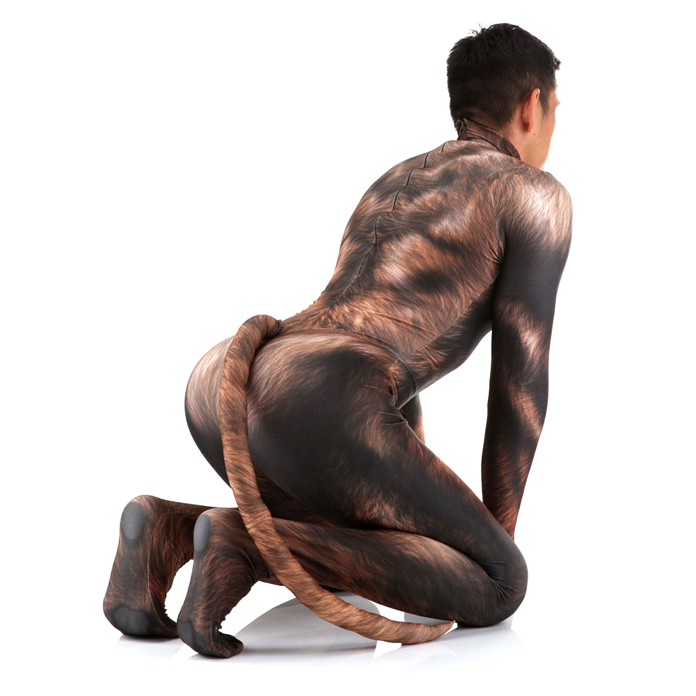 The design is printed on the bodysuit and perfectly creates the illusion of big muscular legs, chest and abs. There are two hidden zippers, one in the crotch (for easy access), and one on the upper back (for putting on the bodysuit).?