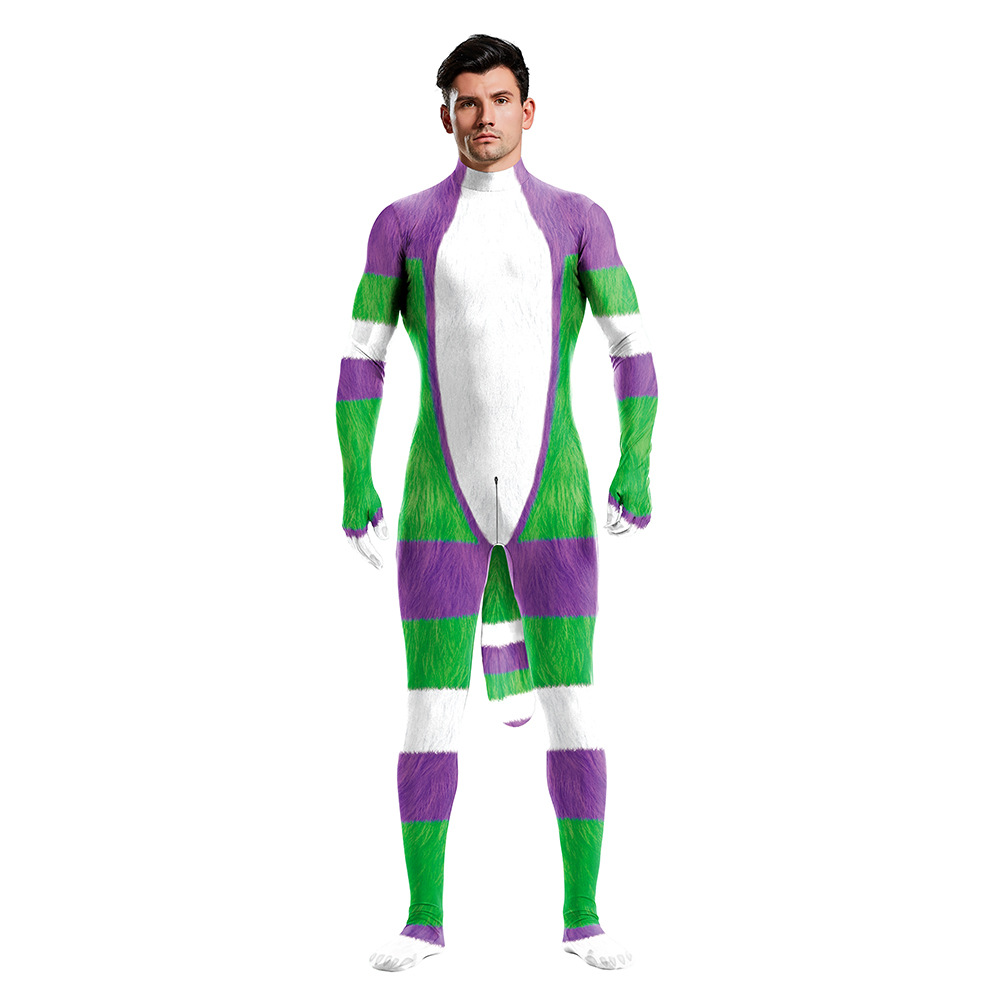 Cartoon Animal Full Body Print Jumpsuit With Tail