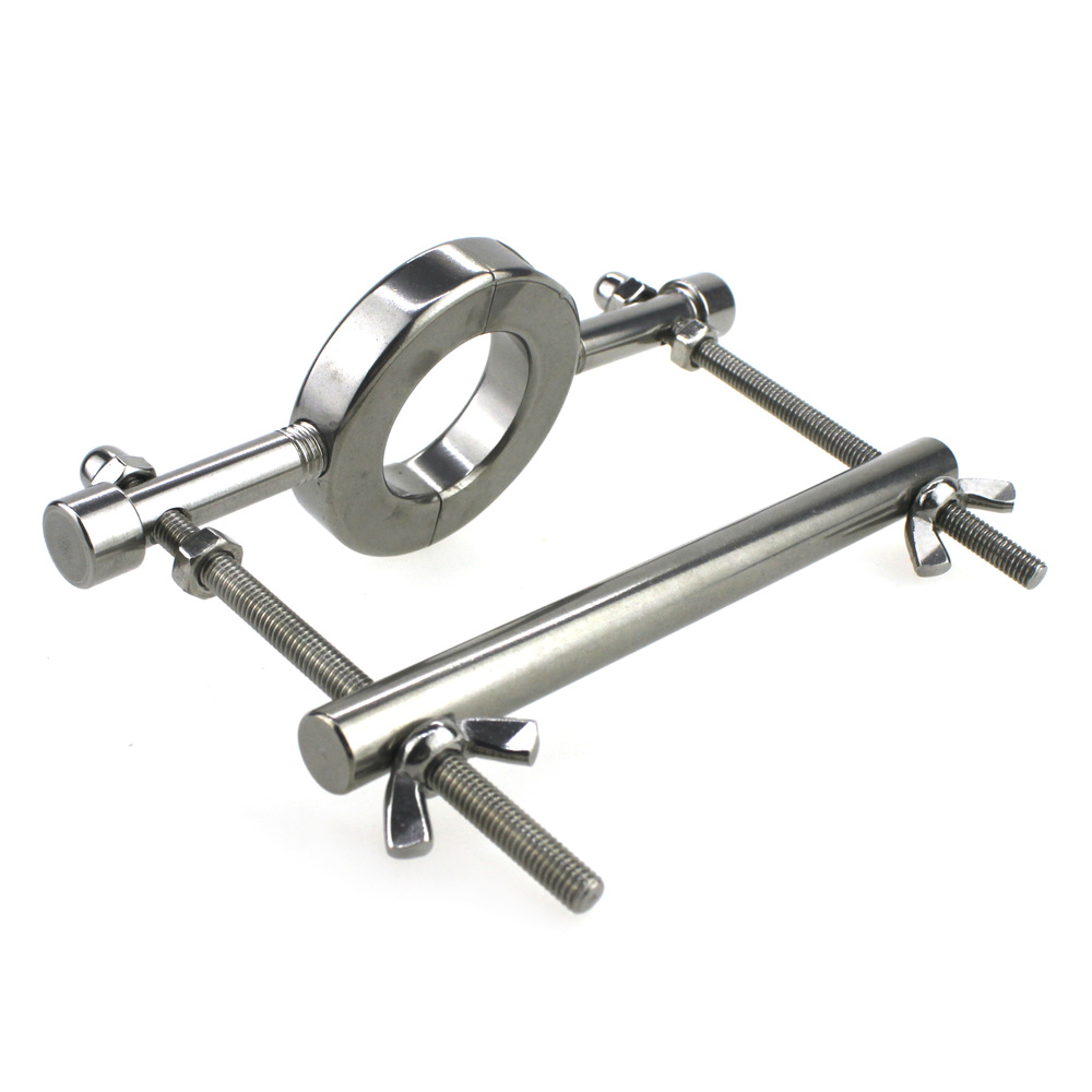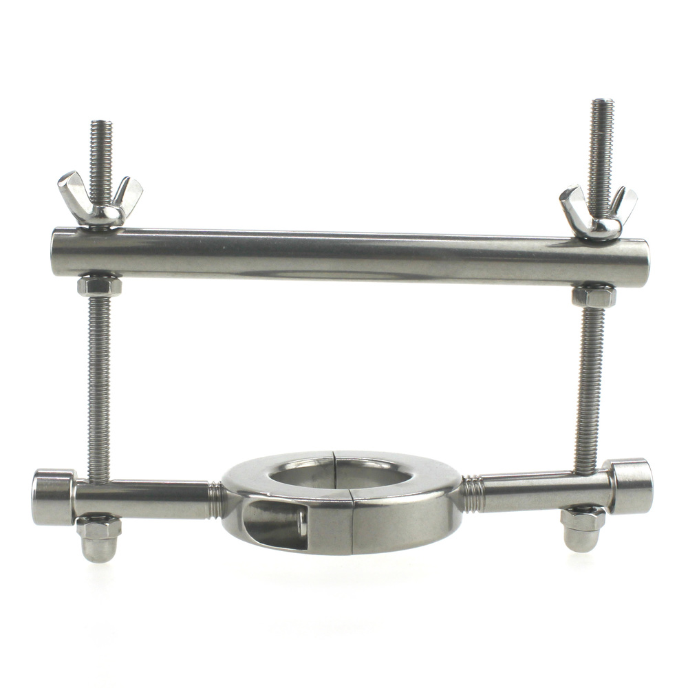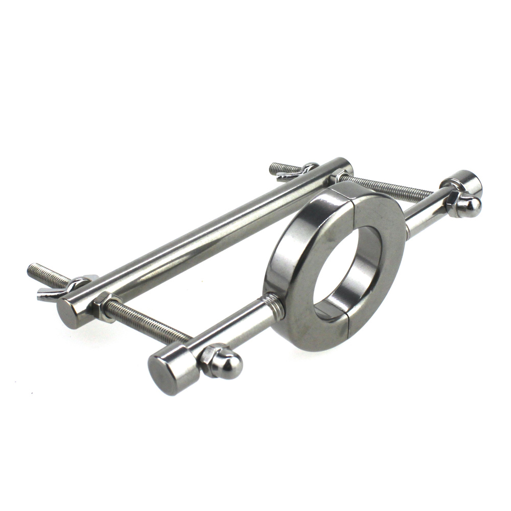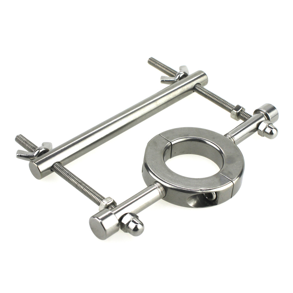 Ball Crusher with Ball Stretcher for more CBT fun!Hit them where it hurts by crushing their family jewels. Made for erotic torture this a true S/M device. This crusher attaches to our ball stretcher using the wingnuts you move the bar up and down to increase pressure or “crush effect” on their balls.Color: SilverMaterial: Stainless SteelPackage: BagBall Stretcher Inside Dia: 3.4cm/1.3 inchBall Stretcher Outside Dia: 6 cm/2.4 inch