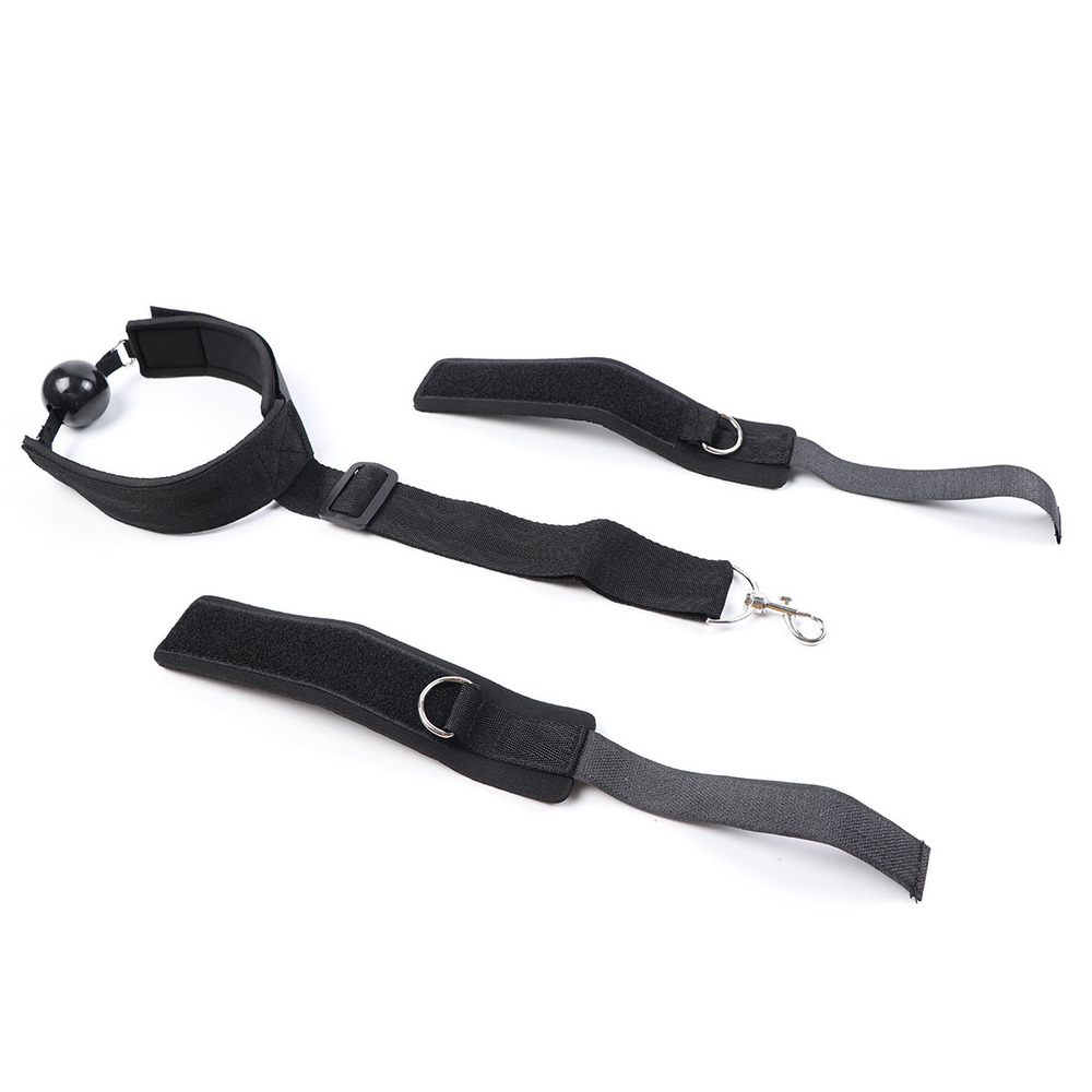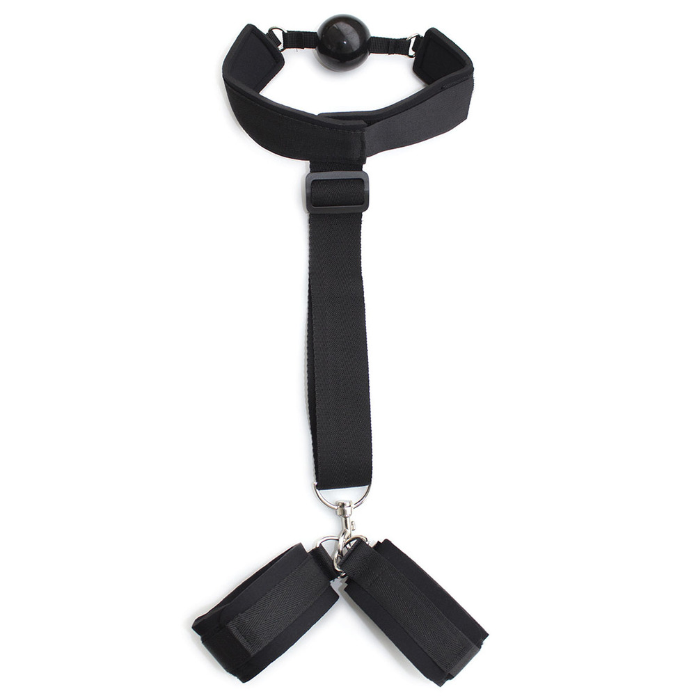 Restrain em and shut em with this wrist restraint and ball gag systemWith adjustable nylon straps, comfortable neoprene, and breathable ball gag, this restraint system is a functional way to put your partner under your control. The cuffs and mouth gag are adjustable using Velcro and you can use the snap hook (on the cuffs) for better positioning or accessory attachment. Also note that you can use the system together or use the parts individually, allowing for a wider variety of options.Tease Me and Tame Me Ball Gag and Wrist Restraint System Specs and BenefitsSize: Gag: Adjusts from 12 to 26 inches in circumference, ball measures 1.75 inches in diameter; Cuffs: Adjust from 6 to 14 inches in circumference 2 inches in width; Center strap: 10 inches in total lengthMaterial: PVC, nylon, Velcro, faux leather, metalColor: BlackFeatures wrist restraints and a ball gag to give you controlUse the snap hooks (on the cuffs) for better positioning or accessory attachmentThe system can be used together, or the parts can be used independently