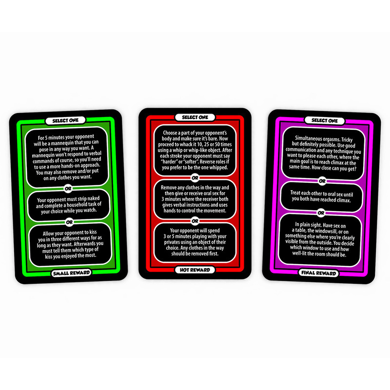 Seriously hot Bedroom Battle is a real sex game where the focus is on sex and nothing else. Start with new and exciting foreplay, move on to intense challenges meant to build up your lust to the point of bursting and then end with a reward that is designed to bring both players to climax. Challenge your limits All reward cards contain three different challenges where one is a little softer, one is seriously naughty, and one somewhere in-between. Which one do you choose, and does your partner dare to complete it? If not, players can bail out two times each during a game. But only two times. Fun and strategic Bedroom Battle is not only about rolling a dice or drawing a card. It??s a strategic card game where you need to manage your battle cards wisely in order to win the challenges you really want to win. Because you can??t win them all. For everyone It does not matter what your sexual preference is. All challenges are designed to work for everyone ?C without compromise. Contents: 92 Battle cards. 210 Sexy challenges on 70 reward cards. 1 Starting playing card. 2 Bail cards. 1 Rules sheet. Playing time: You decide. 30 minutes or a whole day? It??s up to you. Language: English.