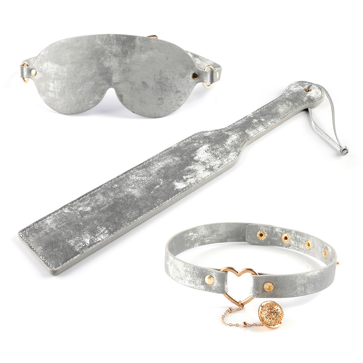 This Satin Leather Spanking Paddle Blindfold Collar Set is designed for couples seeking a luxurious BDSM experience. The combination of satin and leather adds a touch of elegance and sophistication to your intimate moments.Material: Satin LeatherColor: Green/Pink/Gray/BrownCollar Size: 16 – 41.5 cm/6.3 * 16.35 inchPaddle Size: 42.5 * 6.6 cm/16.75 * 2.60 inchBlindfold Size: 21.8 * 8.8 cm/8.59 * 3.47 inchPackage: OPP Bag
