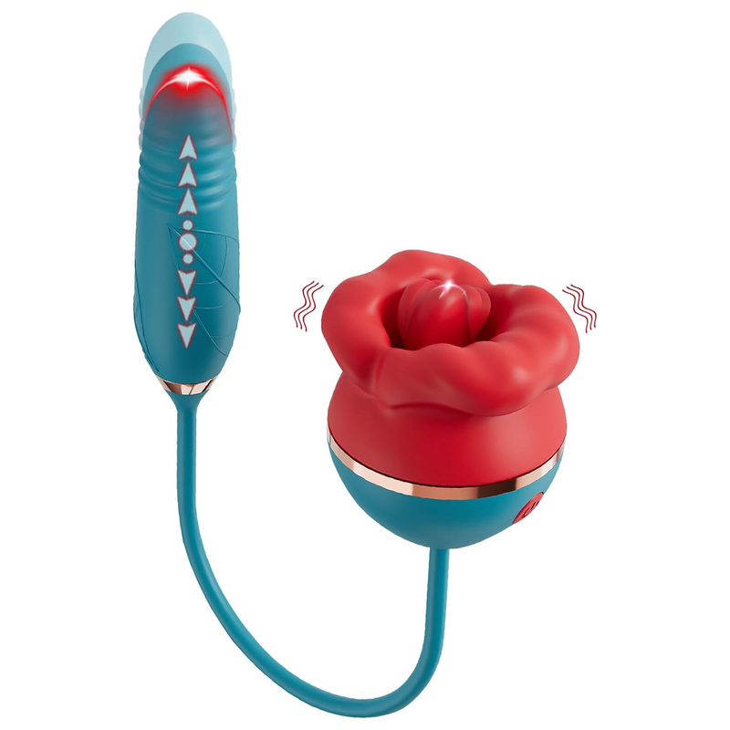 Introducing our groundbreaking 2-in-1 Female Clitoral Vibrator ?C a revolutionary pleasure device merging vibration and thrust functions to create an unparalleled experience. With independent control over each function, this adult sex toy offers unmatched versatility and customization.Explore three seductive tongue vibration modes, ranging from gentle to intense frequencies, with the Fun Rose Sex Toy Clitoral Vibrator. Additionally, indulge in five thrust vibration modes, thanks to the extended connecting cord and strategically placed dual motors at the head and tail of the G-Spot Dildo Anal Plug.Function: 3 Frequency 5 Speeds of tongue and 3 Frequency 3 Speeds Thrusting BulletColor: Red + GreenMouth Size: 8.1 * 7.1 cm/3.2 ?* 2.8 inchBullet Size: 11.7 * 3.2 cm/4.6 ?* 1.2 inchNet Weight: 224 g/0.49 lb/7.9 ozPower: Lithium batteryMaterial: ABS + SiliconePackage: Color BoxFurther: WaterproofPackage Size: 14.5*15*8.5 CM