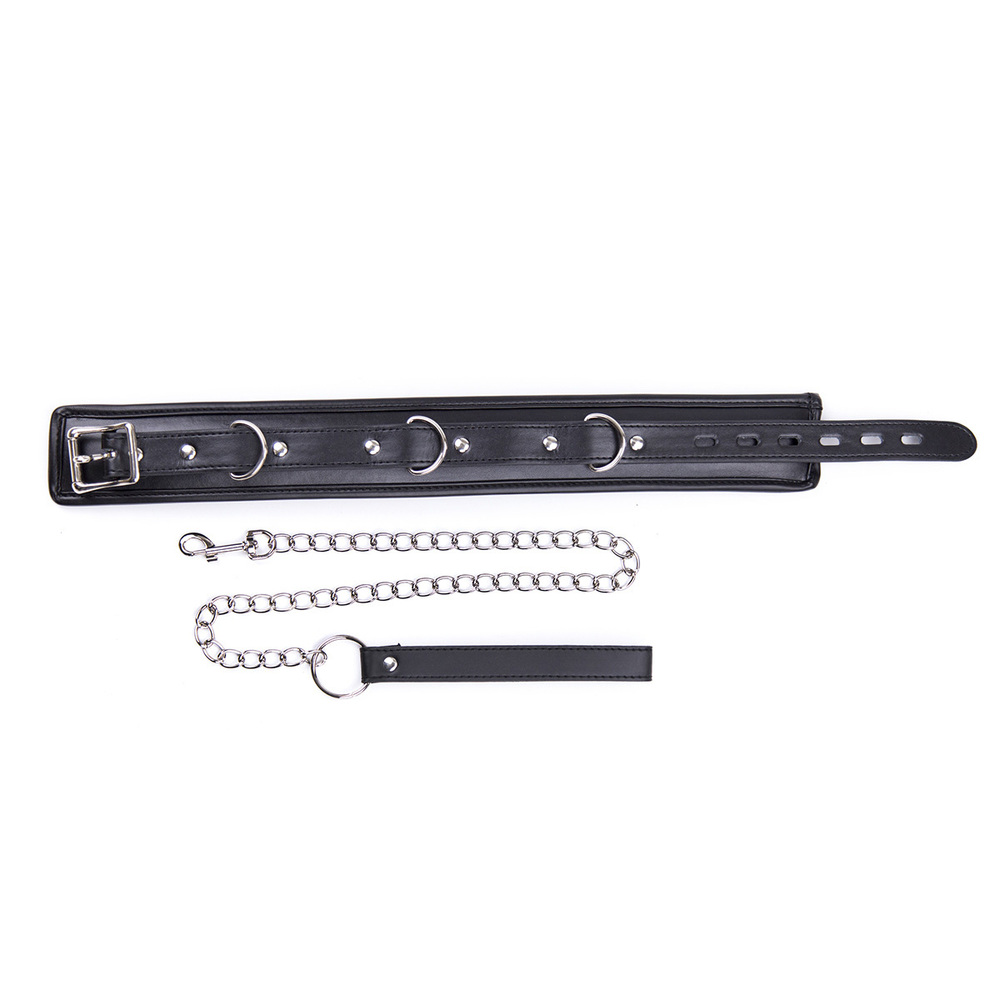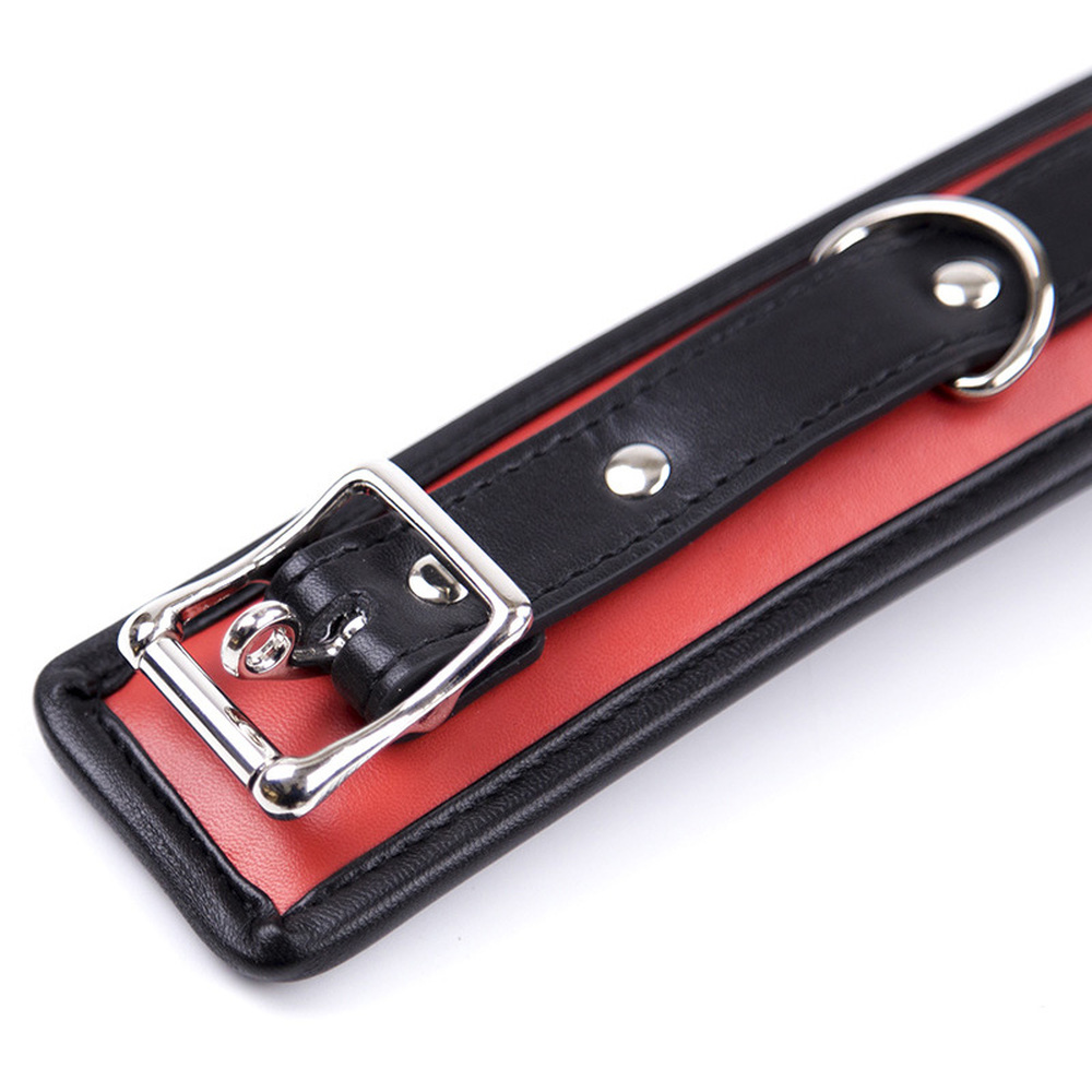 Wearing a bondage collar is not just about being ‘collared’ – its about style too. This classy suede and oil-tanned leather collar with steel attachments certainly has style. Includes a steel buckle strap for a snug and perfect fit. Top quality.