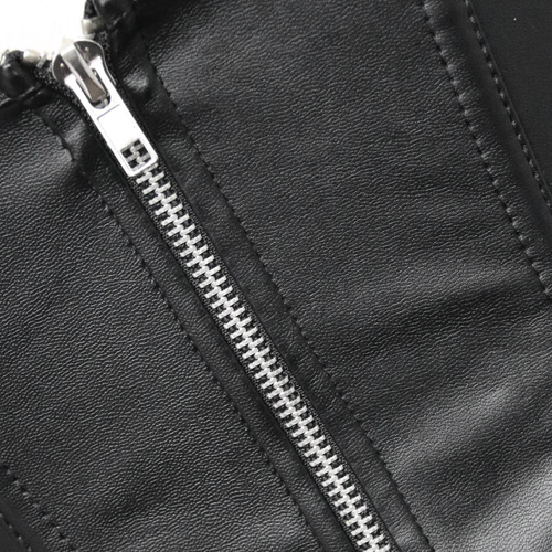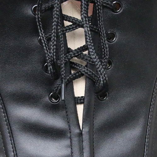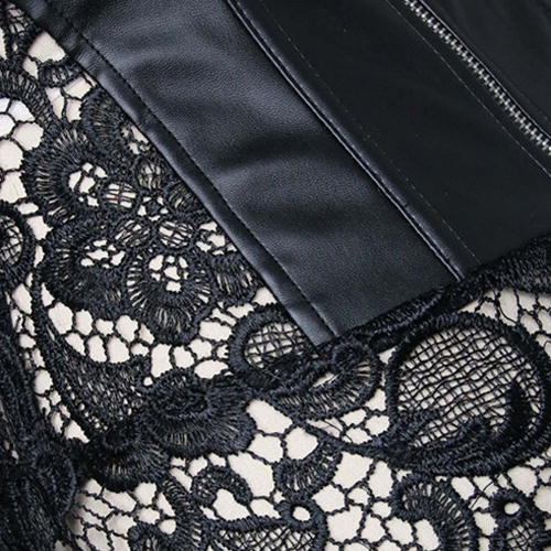 Black Lace Strappy Faux Leather Splicing Back Zipper Bustiers