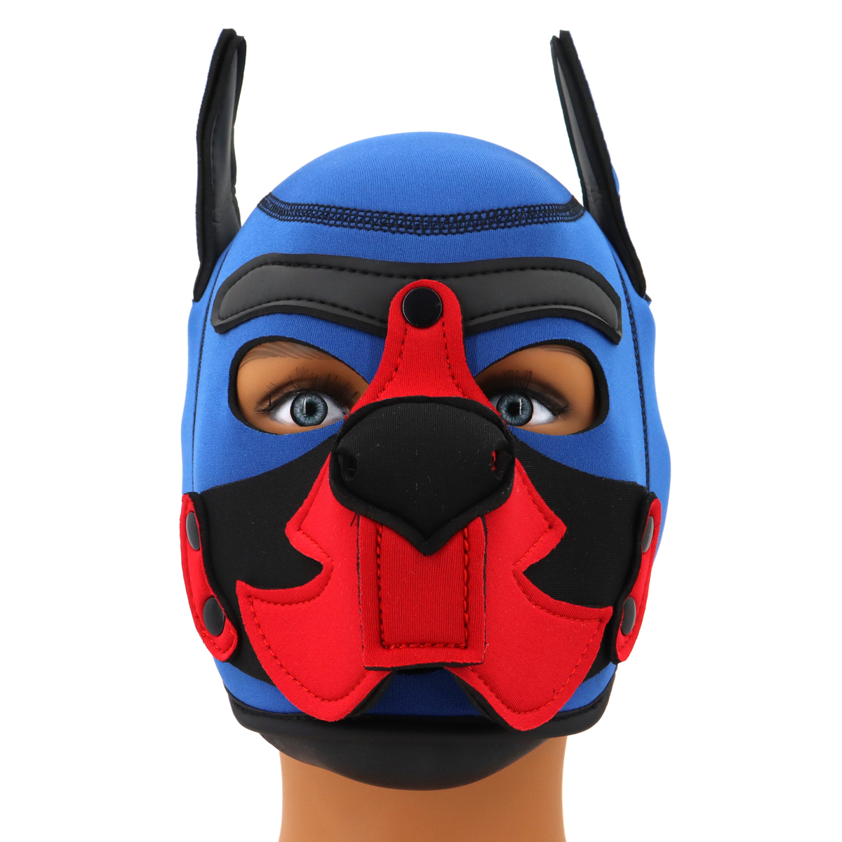 Unleash your playful side with the Blue Pup Mask, designed to add a fun and daring element to your look. Crafted from high-quality neoprene, this mask offers both comfort and style, making it perfect for pet play or any costume event. Mouth in vibrant colors??red & black,white & black??it??s the ideal accessory for those who love to stand out with a bold, confident flair. Whether you’re attending themed events or simply looking to make a statement, this mask blends charm and excitement, adding a modern, playful touch to any occasion.Function: Unisex Full Face Hood Mask with Removable MuzzleColor: Blue + Black & Red/White & BlackHead circumference: 58.5-61 cm/23.05-24.03 inchMaterial: NeoprenePackage: Color Box