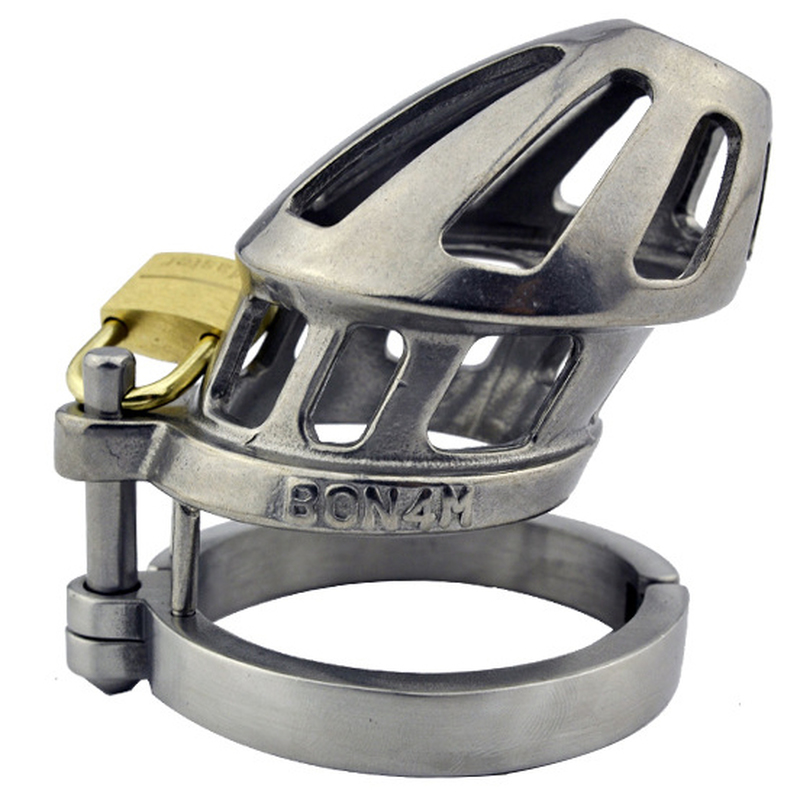 The new, innovative ring design of the?BON4M Stainless Steel Locking Cock Cage Chastity with 4 Cock Ring Sizes?consists of two interlocking pieces that seat into each other. Several ring and pin sizes allow for the perfect fit.A hinged cock ring is the starting point. Insert your choice…