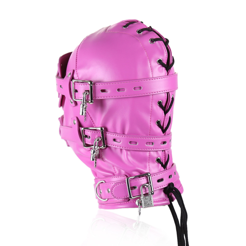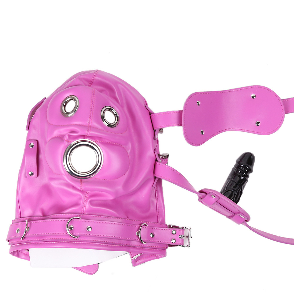Customize your sensory deprivation scenes with a hood that allows you to control your plaything??s sight, hearing, and ability to speak! The padding at the ears of this hood will ensure that they hear very little, keeping every footstep, swish of the flogger, or buzz of the vibe a secret. Three holes for their eyes and mouth give you the option of letting them see what??s being done to them and moan in pleasure. However, an optional blindfold easily covers their eyes so that your every move is a surprise, intensifying each sensation. The penis-shaped gag also efficiently shuts your slave up so that they can??t beg for more and every noise is muffled. Fill that pretty mouth with cock! Both accessories are adjustable with locking buckles so that your plaything is fully confined. The collar also adjusts to your lover??s size and has a locking buckle, as well as 3 D-rings for attaching a leash or other BDSM devices. Lacing up the back of the hood can be tightened or loosened to fit your partner perfectly.Material: Faux LeatherColor: Rose/BlackLength: Adjustable Fit MostPackage: OPP Bag