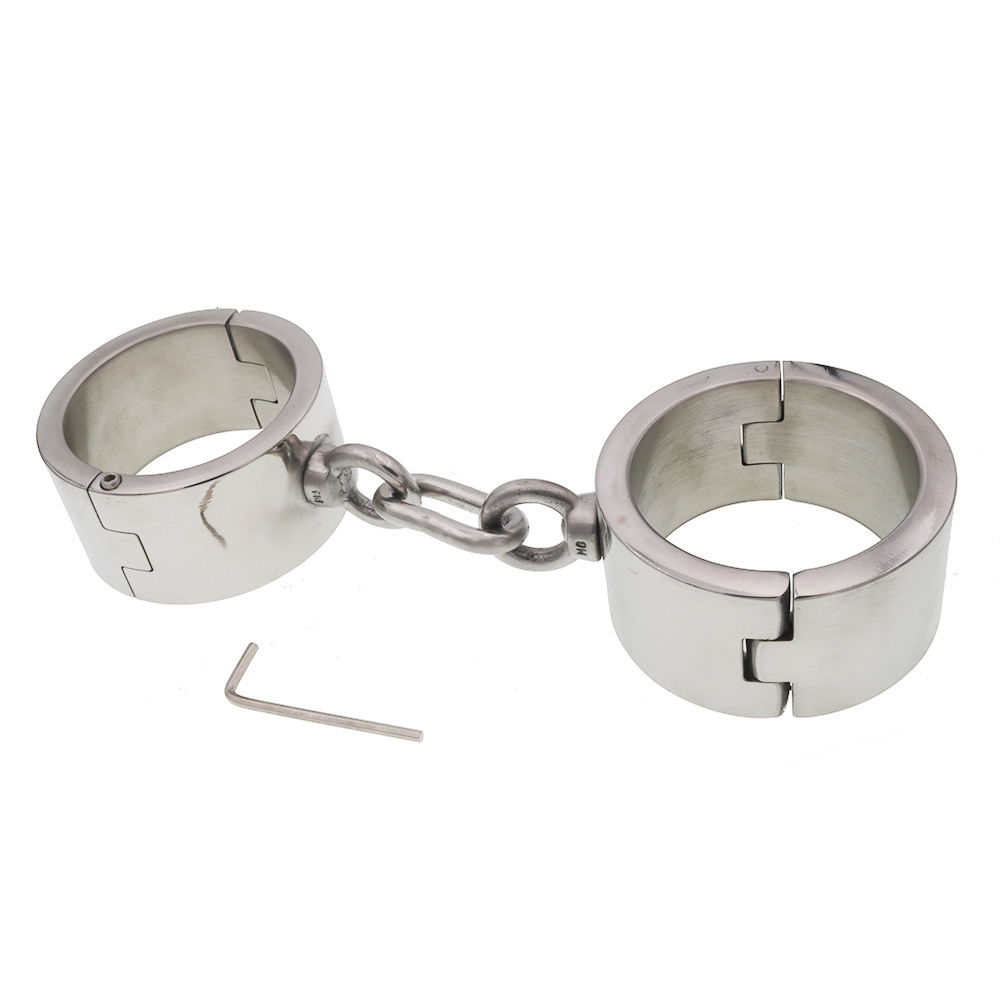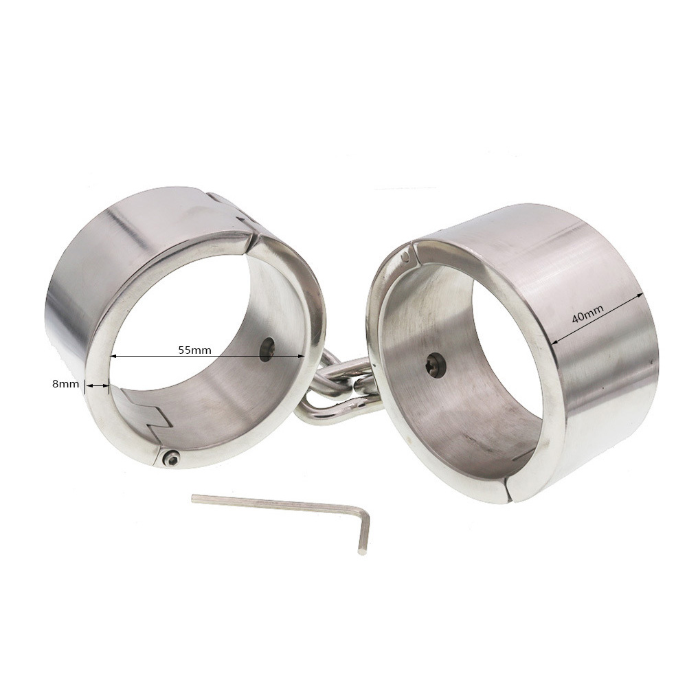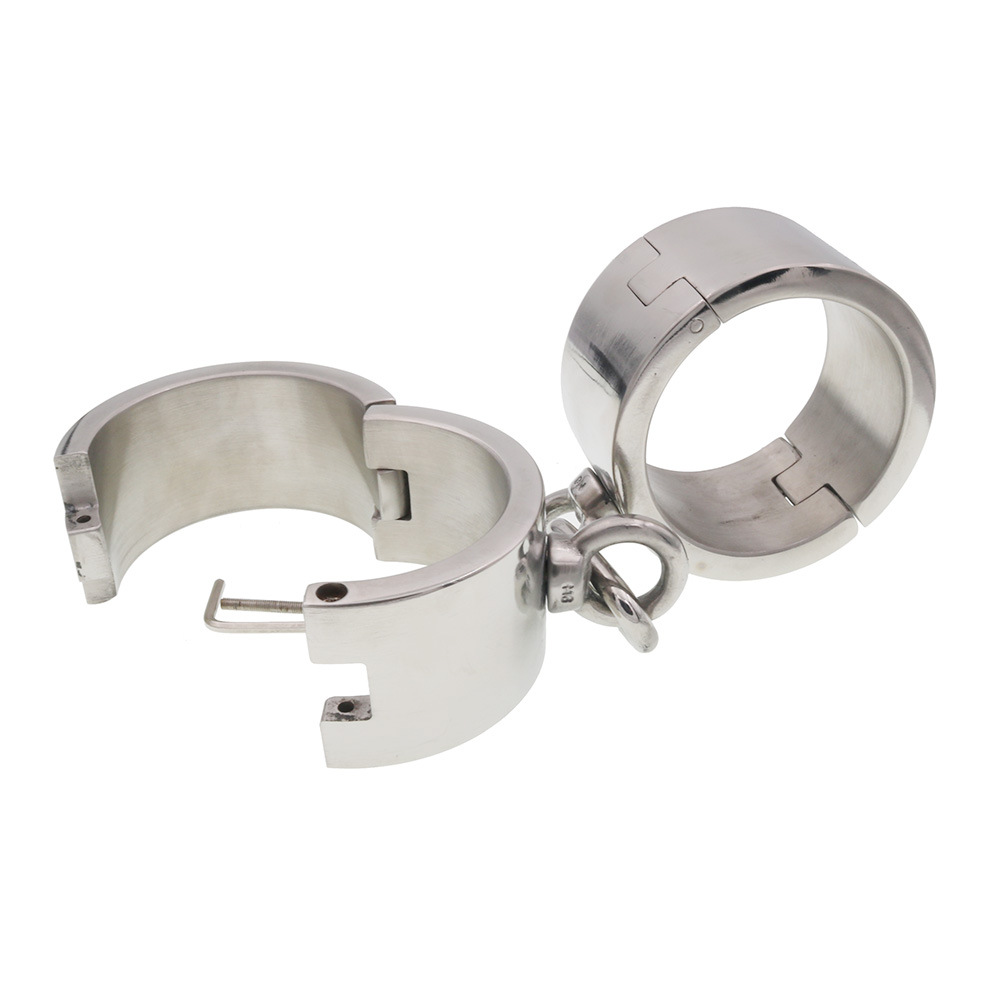 Each slave needs to have their own custom made set of wrist shackles. These irons will put them in their place. Made from strong, cold, heavy steel allowing long use and wear. Our blacksmith custom makes this item by hand. Locks with a stainless steel allen screw, opens with allen key (supplied).