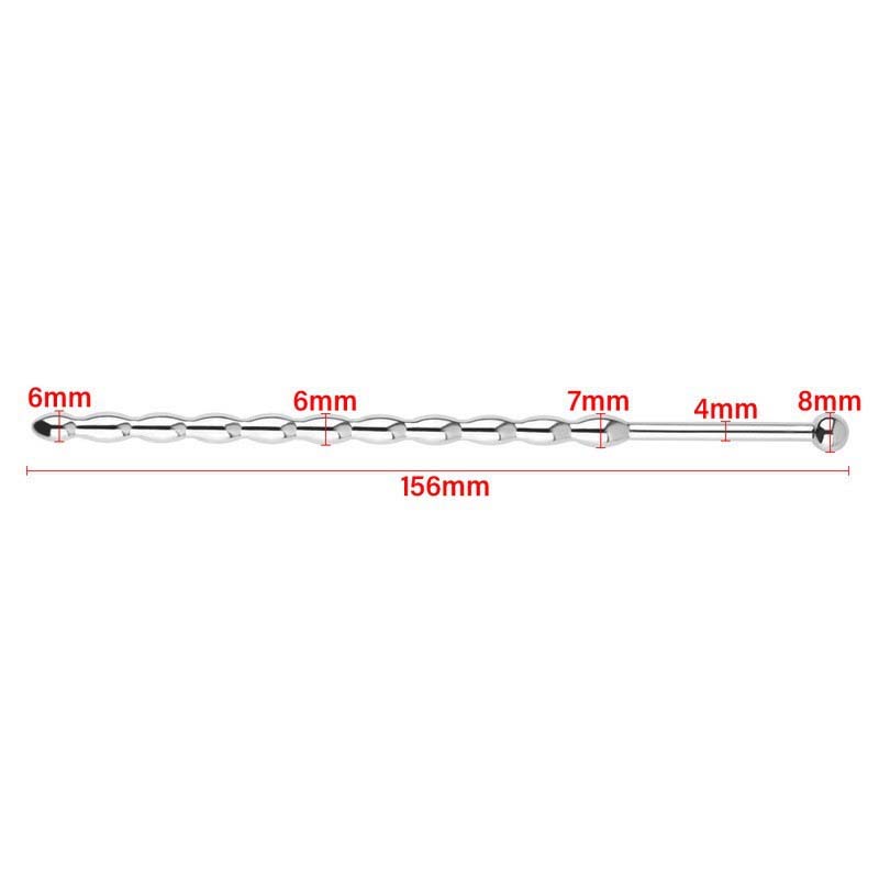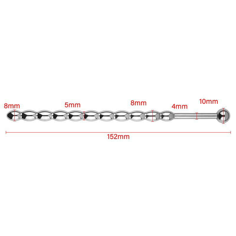 The Brooks Ball Sounding Plug is 8 mm(0.31″) in diameter with 11 balls , and insert length is about 14.5cm(5.7??) long. It is made out of 316LVM Surgical Steel and is hollow so that, it fluids can pass right through it. With a 10mm(0.4″) ball on the top you will not lose your grip during those intimate moments.?