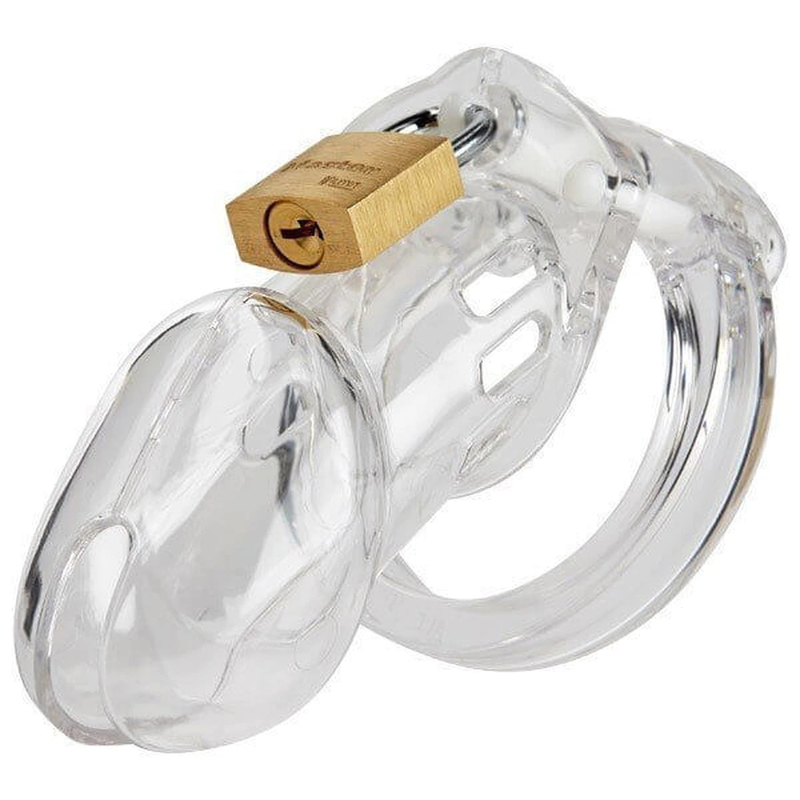 Product Features? 3 1/4″ length 1 3/8″ inside diameter cage – most popular size? 5 ring sizes – 1 1/2″I.D., 1 5/8″I.D., 1 3/4″I.D., 1 7/8″I.D., 2″I.D.? Package includes: 1 cage portion; 5 different size rings; Locking pins and spacers; One brass padlock; Five individually numbered plastic locks? carton packaging? Numbered plastic locks included allow wearer to go through metal detectors without setting off alarmsProduct The CB-6000 Male Chastity Device is a new innovative design offering the utmost in comfort and security. The CB-6000 Male Chastity Device offers the utmost in comfort and security. The ring design consists of three interlocking pieces that fit together like a puzzle. The two guide pins hold the top pieces together. The oval locking pin goes through the middle recessed hole connecting the cage portion to the ring. The flat design of the rings is extremely comfortable and secure. The CB-6000 is made of medical grade polycarbonate material. It is lightweight, hypoallergenic and durable. The cage portion is vented for hygiene and has a bottom opening allowing use at urinals. The different size rings and spacers included in each package allow you to customize your fit to your individual needs. The CB-6000 restricts you from touching your genitals for sexual pleasure and gives the Keyholder control over the sexual fulfillment of both partners.