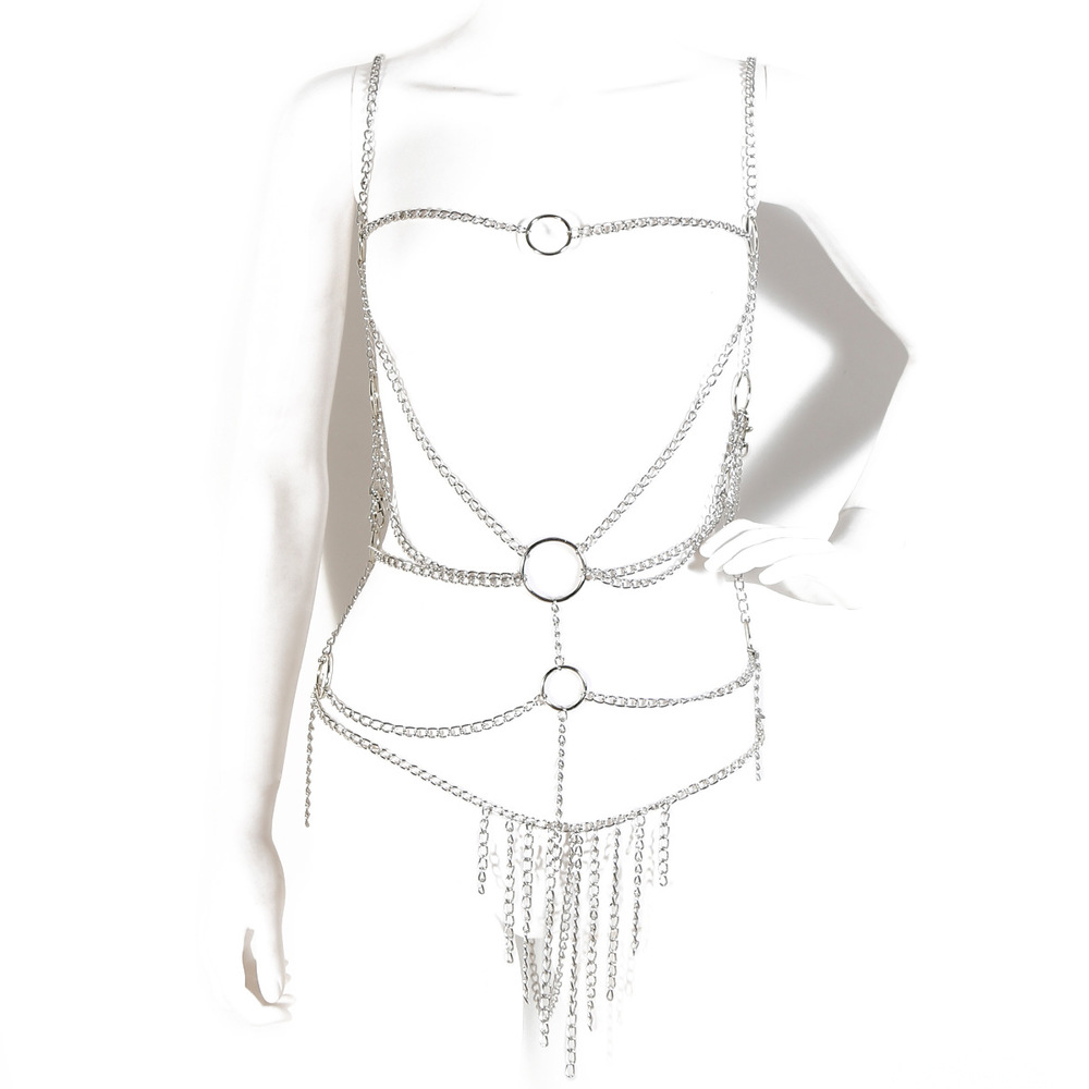 Sold as a Two Piece Set. This is real metal chain with top quality plating to last for years. Adjustable back strap allows this to fit most. Includes padlock and key for closure in the back. Make it fit as snug as you wish for pressure and restrain in just the right places! (Hint, warm this up in warm water and dry with a towel before you put it on, unless.. you like that feel of cold metal against your skin…..)