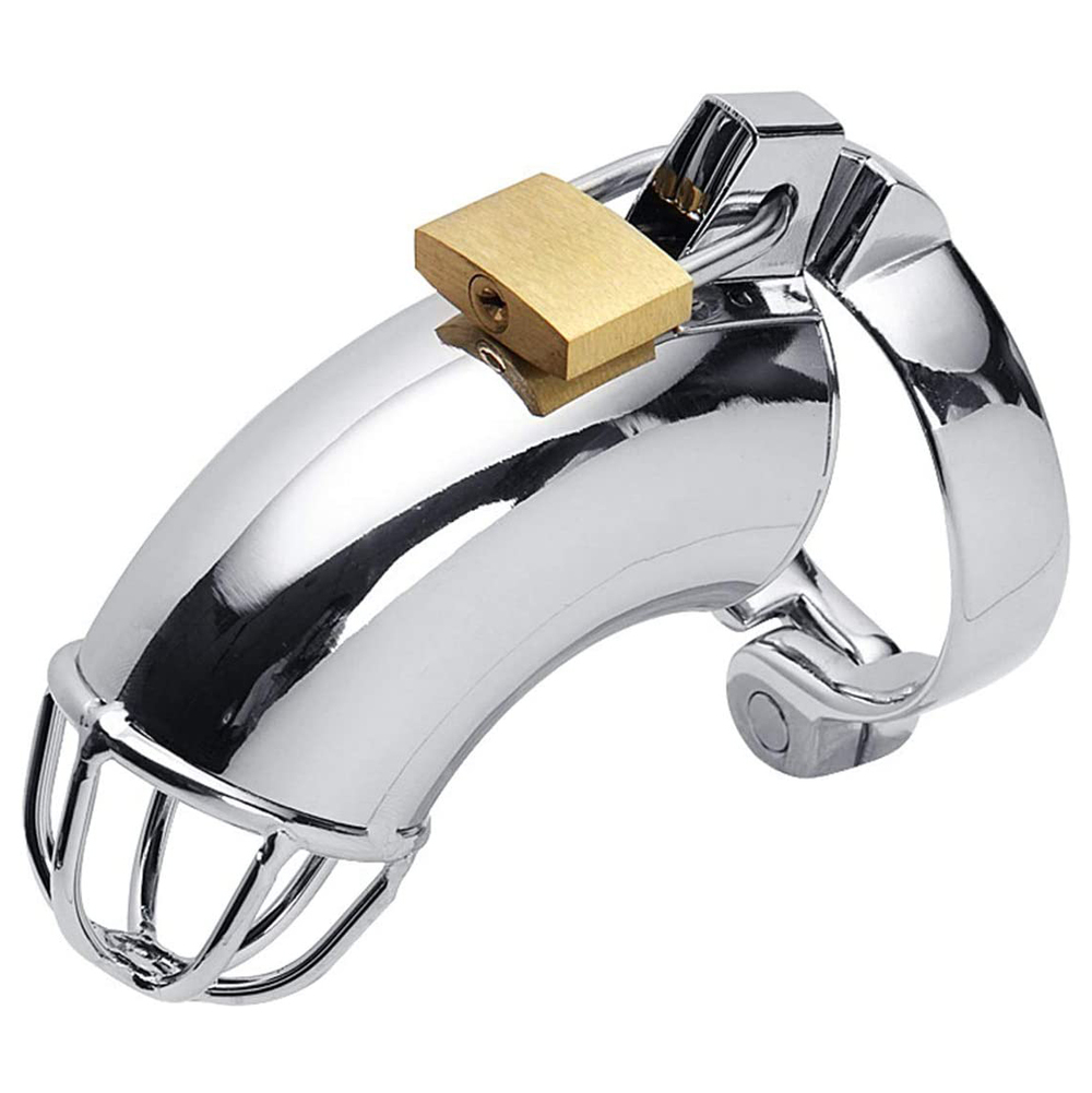 The Houdini Ceeehrome-Plated Chastity Device Lancelot Diamond Tube (with 2 rings)?Love the look of metal? Then this chrome tube is just what you need for restricting your man. When combined with the chastity cage rings, you have a way to keep your man??s cock locked in tight and secure. Just place your man??s flaccid penis into the cage and use the ring and padlock to lock him in tight. As you tease and please him, the tube will restrict his erection.The cage is made of a tube and attached fine steel cables on the top. The open tube measures 4.25″ in length and 5″ in circumference (1.5″ in width).The diameter of the ball ring have 5 Size:38 mm/1.5 inch (S)45 mm/1.8 inch (M)50 mm/2.0 inch (L)