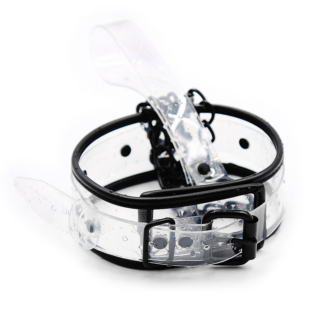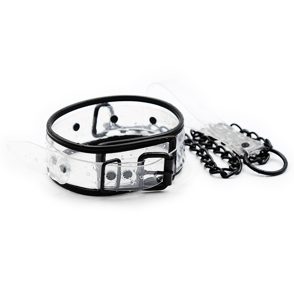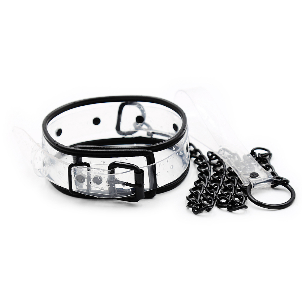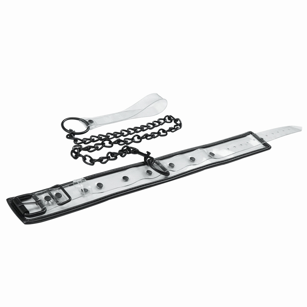 Material: PVCColor: Black + ClearCollar Size: 46 * 5.5 cm/18.1 * 2.2 inchLead Length: 78 cm/30.7 inchLock: Pin/Buckle(Random Shipping)Package: OPP Bag