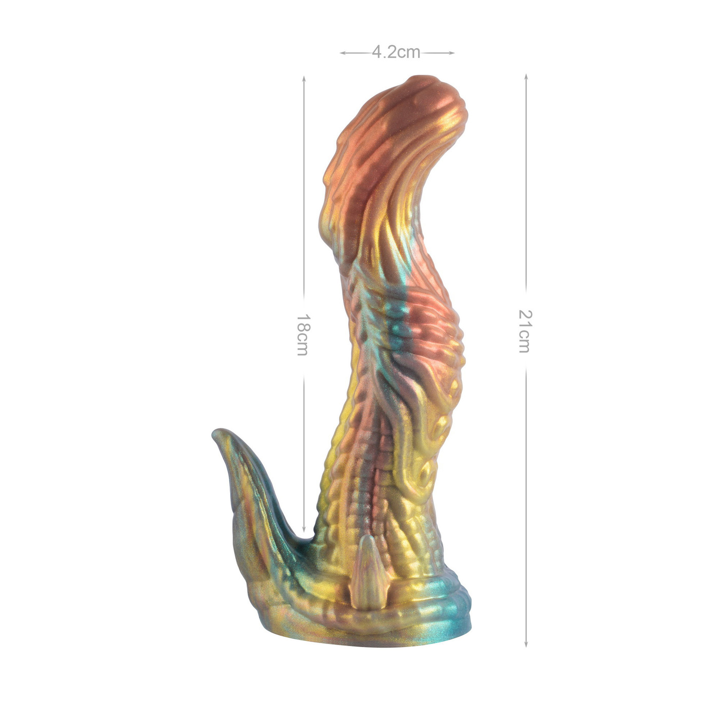 . Alien dildo for sci-fi fantasies and out-of-this-world role play.. It’s a mix of violet, gold, pink, blue, and flecks of glitter.. A firm, flexible core and a soft, squishy exterior?- perfect for G-spot or P-spot pleasure.?. Use the suction-cup base for hands-free fun or strap-on play.. Made of body-safe, phthalate-free premium silicone feels amazingly soft to the touch?.Material: Premium SiliconeAllergens: Latex-Free, Phthalate-FreeDiameter: 1.65 inch (4.2cm)Base Diameter:3.15 inch (8cm)Insertable Length: 7 inches (18cm)Overall Length: 8.2 inches (21cm)Packaged Weight:0.8kg