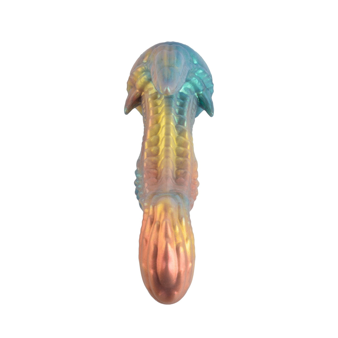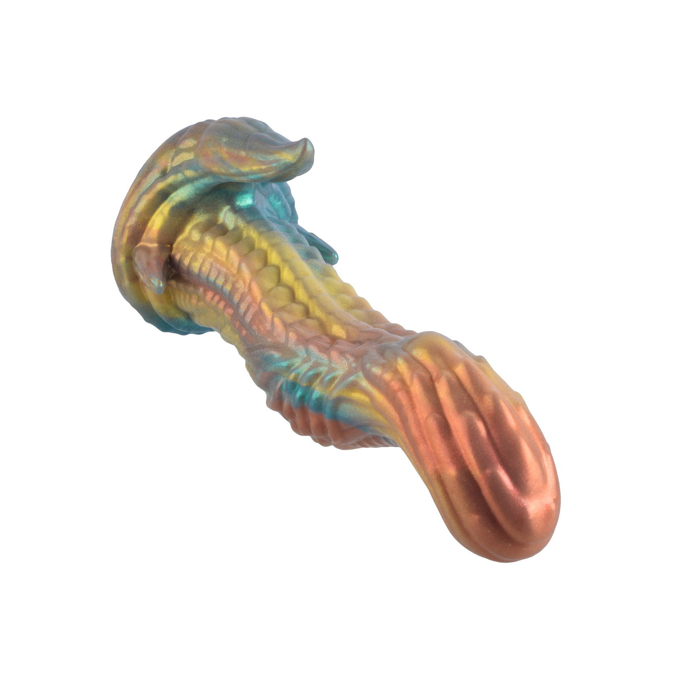 . Alien dildo for sci-fi fantasies and out-of-this-world role play.. It’s a mix of violet, gold, pink, blue, and flecks of glitter.. A firm, flexible core and a soft, squishy exterior?- perfect for G-spot or P-spot pleasure.?. Use the suction-cup base for hands-free fun or strap-on play…..