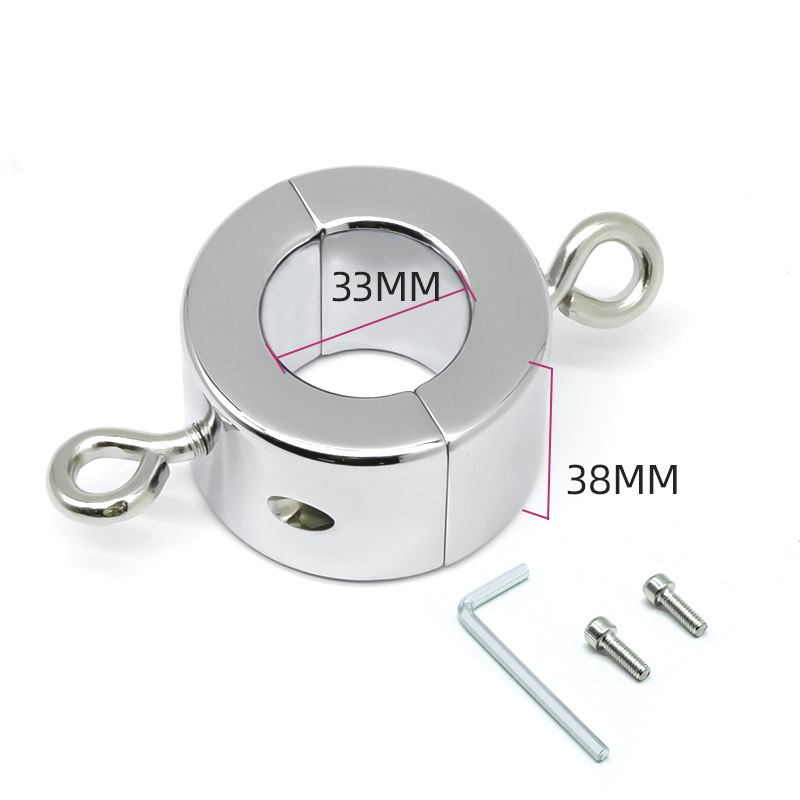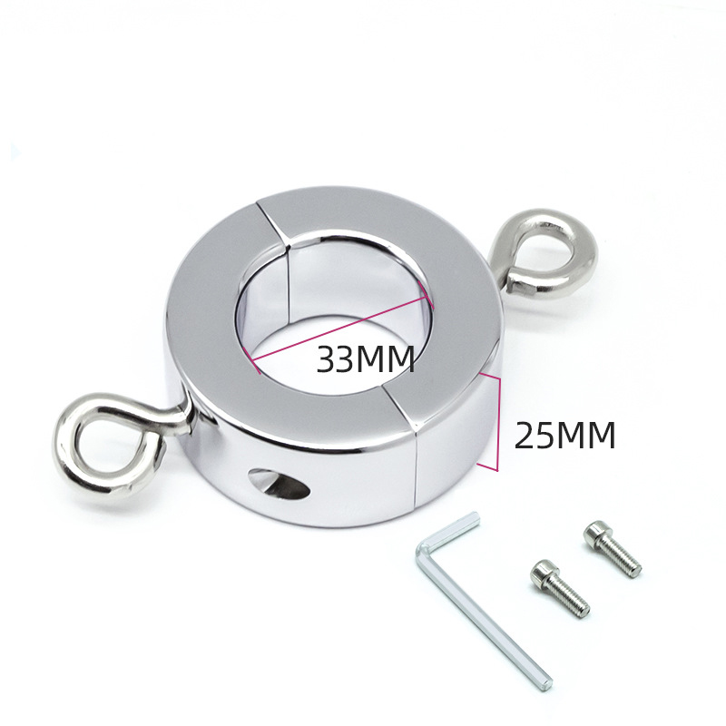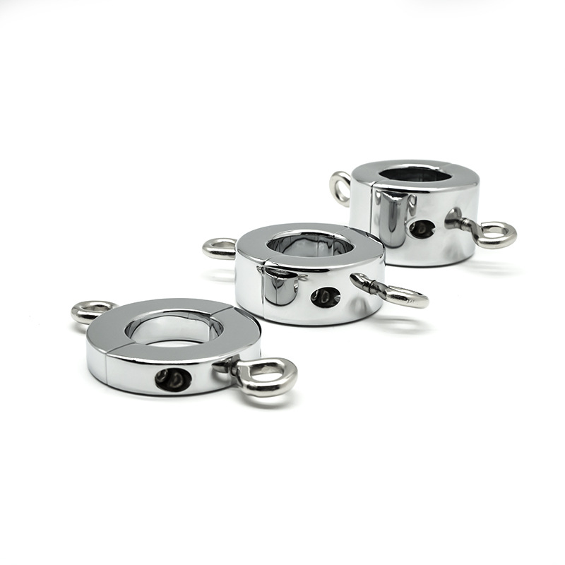 Two eyebolts that are included with the ball stretchers attached via screw can be used to attach a wide array of objects such as ropes, weights, cuffs, etc…the possibilities are endless! (But remember to be gentle with the balls when exploring the possibilities.)