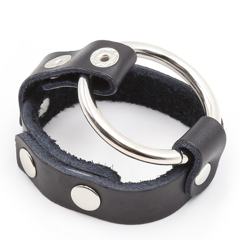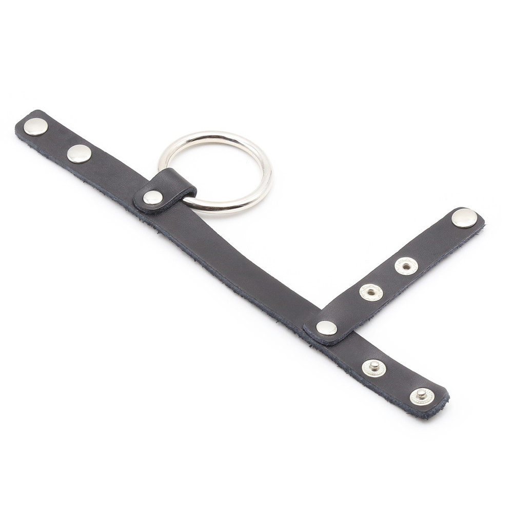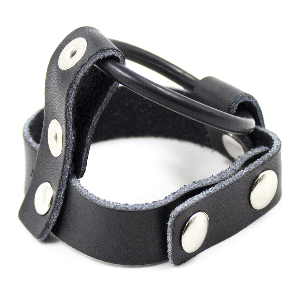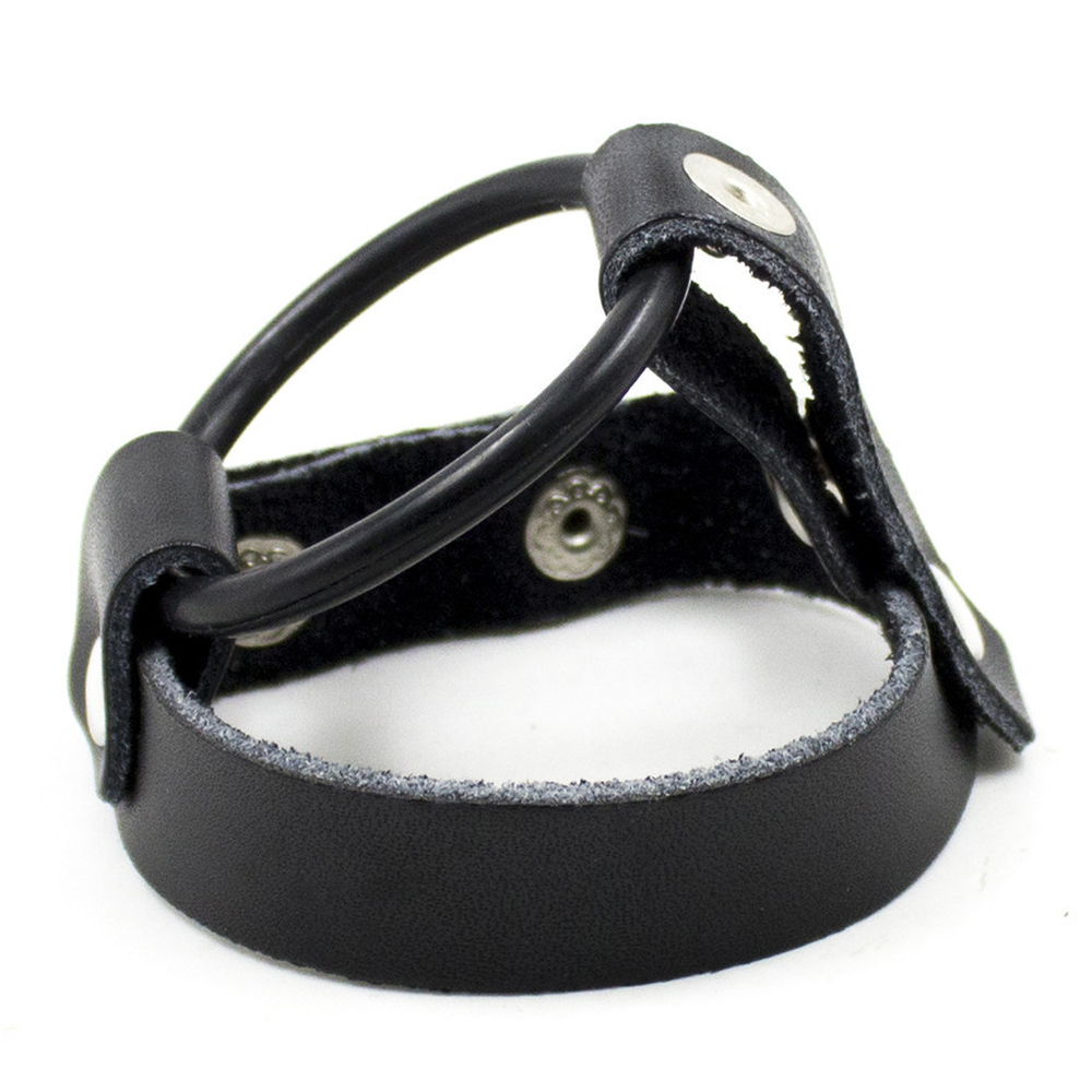 Enhance your erection with a snug rubber/Metal penis ring and an adjustable ball harness. This leather harness secures around your entire package, restricting your penis and balls, and easily tightened or loosened with metal snaps. The ball separator is also easily adjusted with snap closures. You will have a harder erection for longer in this sexy and effective C&B harness and ball divider.?Measurements:?Internal ring diameter of 1.5″/38mm, connecting strap adjusts from 2.5 inches to 3 inches, larger ring adjusts from 5.75 in circumference to 7.5 inches?Black: Rubber RingSilver: Metal Ring