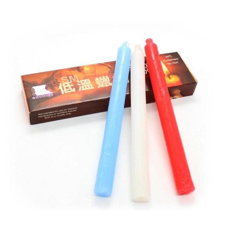 A set of Dichen SM low-temperature candles, designed for sensual activities such as wax play. These candles are specifically formulated to melt at a safe temperature for skin contact, typically around 50??C (122??F).?Function: BDSM/fetish wax play or sensual massage.Color: Purple + Black + Red/Blue +White + RedSize: 18.3 * 1.6 cm/7.21 * 0.63 inchNet Weight: 103 g/0.23 lb/3.63 ozMaterial: Low temperature waxPackage: Color Box