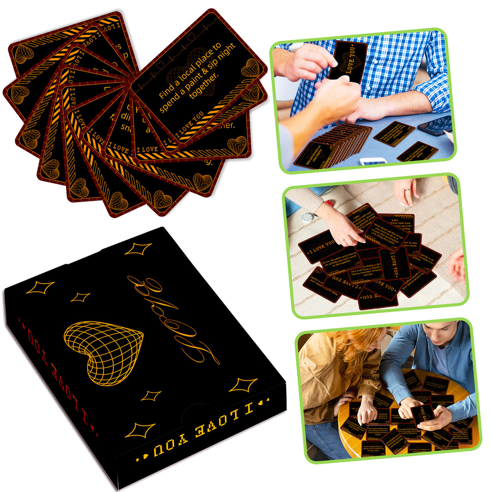 Spice up your relationship with this relationship enhancing set of 50 interactive cards for couples! Perfect for date nights, camping trips, hotel stays and even parties, these ambiguous and fun cards will spark engaging conversations and fun activities between you and your partner.Our interactive card set for couples is durable, colourful and fun. It is perfect for couples of any age. Each card presents an open-ended prompt or challenge that allows you to explore new aspects of your relationship in a fun and interactive way.With 50 unique cards, you’ll never run out of fresh ideas to keep the spark alive.Whether you want to deepen your connection, rekindle the romance, or simply enjoy quality time together, this set of cards is a great addition to your couples’ toolkit.Small and portable, you can take the fun anywhere – from the great outdoors to a cosy night in. Ignite your curiosity, enhance intimacy, and create lasting memories with this relationship-boosting set of 50 interactive cards for couples.Size: 11.0 * 8.0 cm/4.33 * 3.15 inch