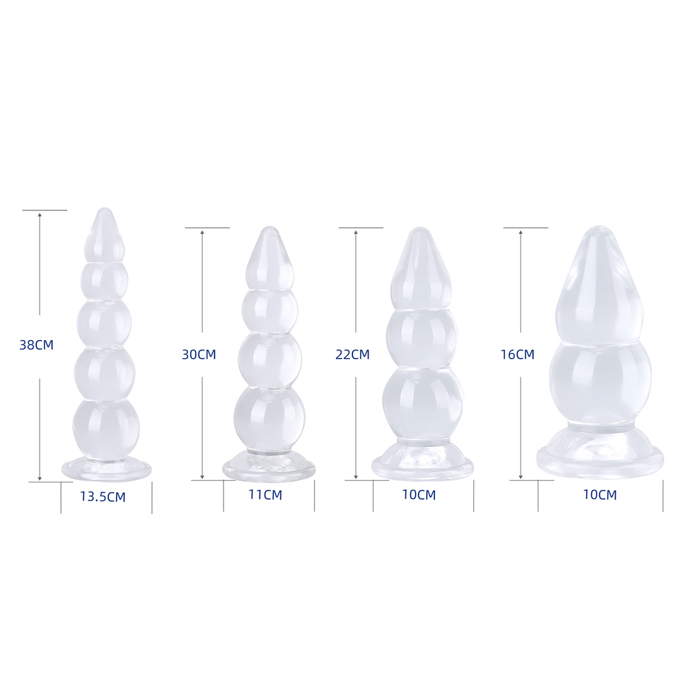 Crystal Jellies Anal Delight Butt Plug is a pretty plug in a fitting size for you who is either new to or a little experienced in the world of anal stimulation.You get a plug that gradually gets more filling, for enjoyable play at your own pace.The flexible PVC makes the Anal Delight Butt Plug soft and supple, for a feeling that is extremely comfortable, while you get aroused internally.The base functions as a surerty of the plug staying where it should.?Function: Anal beads pleasureColor: ClearSize:?XS: 13.5 * 6 cm/5.3″ * 2.3″(186 g/0.41 lb/6.56 oz)S: 16 * 10 cm/6.3″ * 3.9″(330 g/0.72 lb/11.6 oz)M: 22 * 10 cm/8.6″ * 3.9″(565 g/1.24 lb/19.9 oz)L: 30 * 11 cm/11.8″ * 4.3″(922 g/2.03 lb/32.5 oz)XL: 38 * 13.5 cm/14.9″ * 5.3″(1385 g/3.05 lb/48.85 oz)Power: NoMaterial: TPEPackage: OPP BagFurther: Soft/Non-toxic