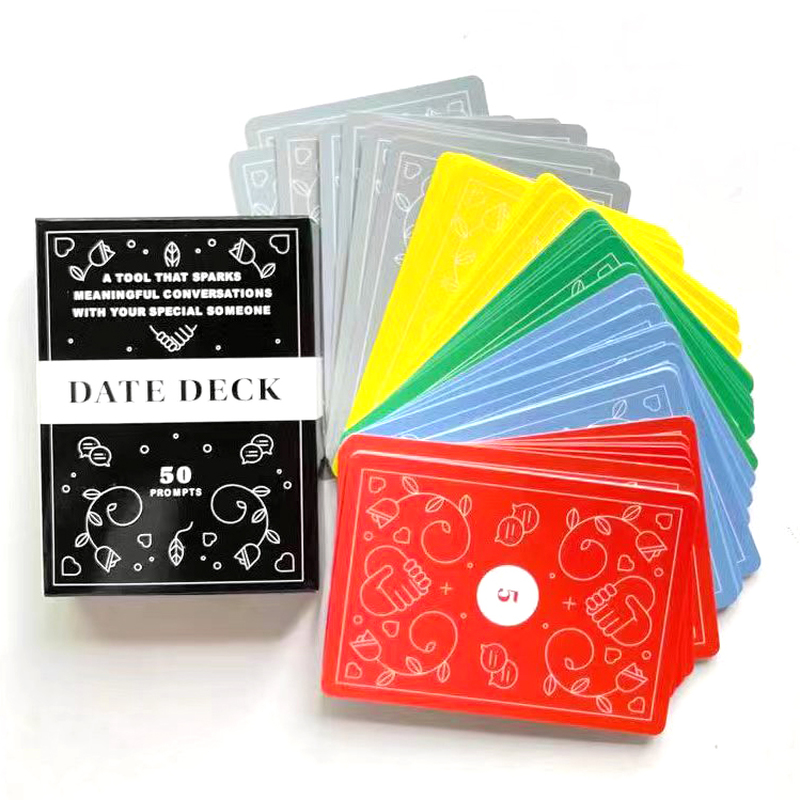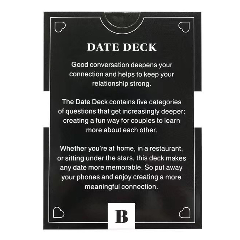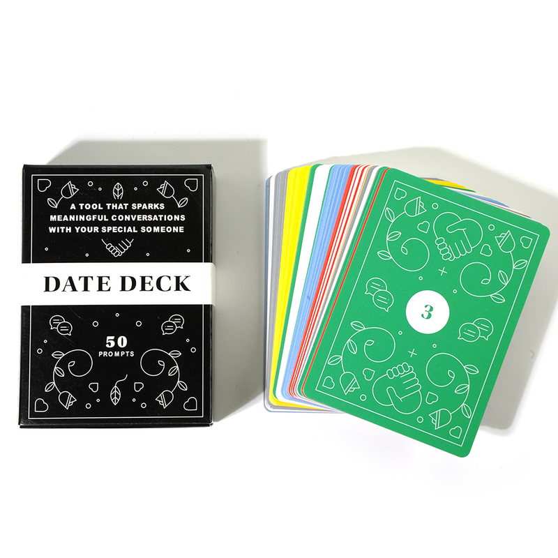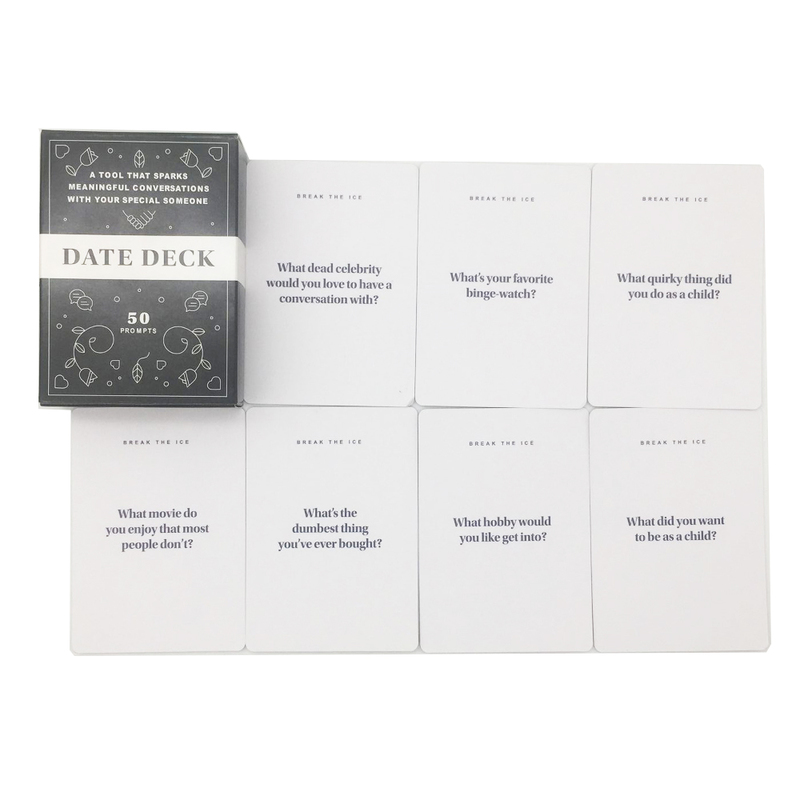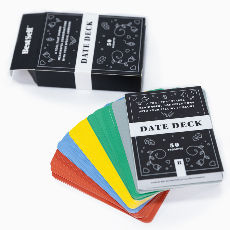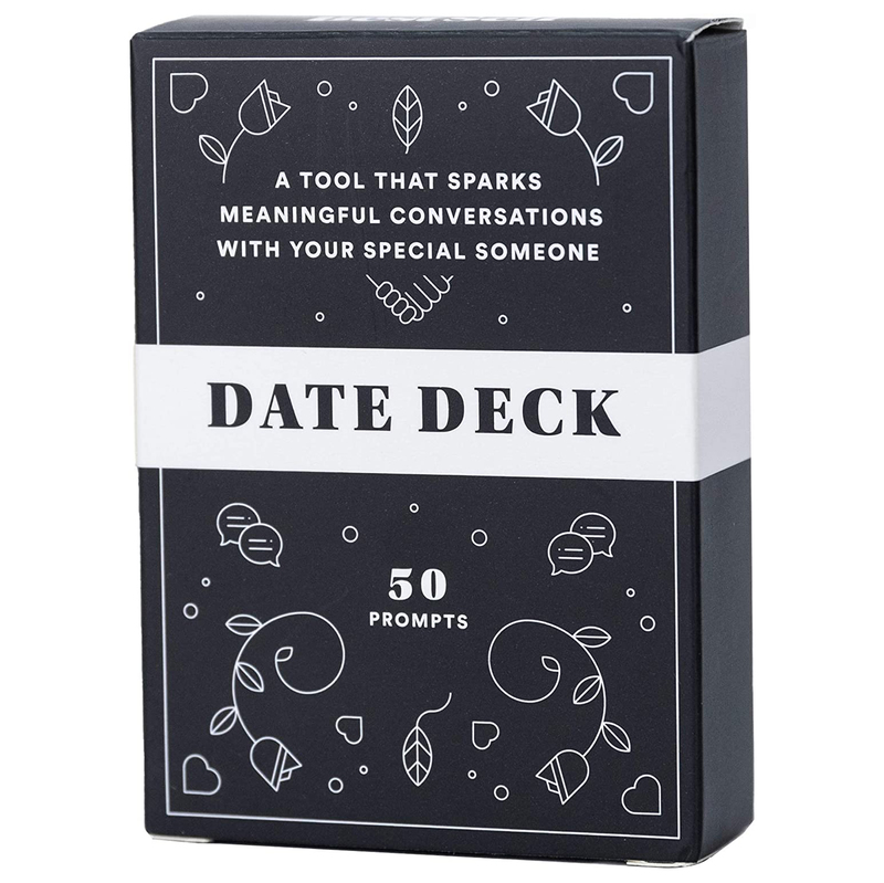 Take the pressure off date night with 50 conversation starters created to help you get to know each other better. Play the Couple’s Date Deck game. Choose a category, answer questions, and collect points! Explore five question categories for exciting, engaging conversations Get beyond small talk with ease Pocket-sized for taking out and about A fun way to strengthen your relationship and talk about what matters so you can grow together