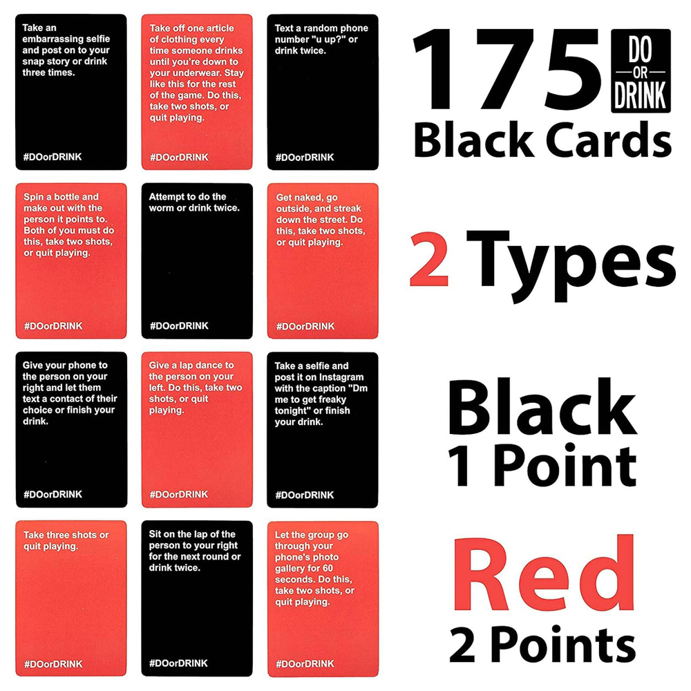 MOST HILARIOUS PARTY GAME, EVER: This game makes for an outrageous party in a box, perfect for your next party, get together or game nightEASY TO LEARN: There are no ??free skip?? cards in this game ?C and let??s be clear, doing these dares will completely take your party to a new level, you??ll be talking about it for weeks after it endsPERFECT FOR PARTIES AND GAME NIGHTS ?C It??s the most fun and savage party game. Awesome board card game to play with friends, office party, dinner, parties, etcNO BORING DARES: Our USA design team avoided ??dud dares?? found on other card games. Instead they packed all 350 cards with dares as well as challenges that are fast paced and hilarious with every turn