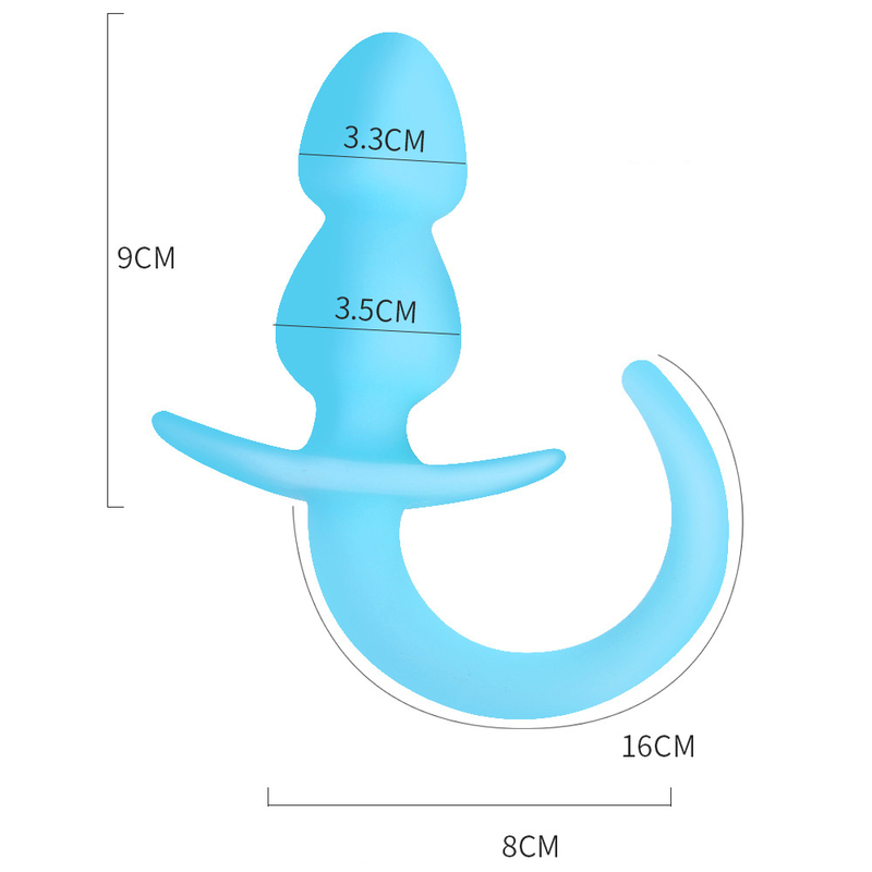 Every human puppy will be delighted with this buttplug with tail, because a two-legged puppy needs a beautiful dog tail to wag! Made of 100% silicone, the butt plug not only feels totally comfortable, it also impresses with its particularly high durability.Thanks to the anatomical shape, the base of the puppy buttplug suctions securely between the butt cheeks when it is fully inserted. So you can wear the buttplug with tail comfortably and securely 24/7. All around, a perfect anal plug with tail and the first choice for many human pups.Function: Buttplug with Tail BeauColor: Blue/BlackSize: 25.0 * 3.5 cm/9.85 * 1.38 inchInsert Size: 9.0 cm/3.55 inchNet Weight: 89 g/0.20 lb/3.14 ozPower: NoMaterial: ABS + SiliconePackage: Color BoxFurther: Blue color is luminous color,Glow at night