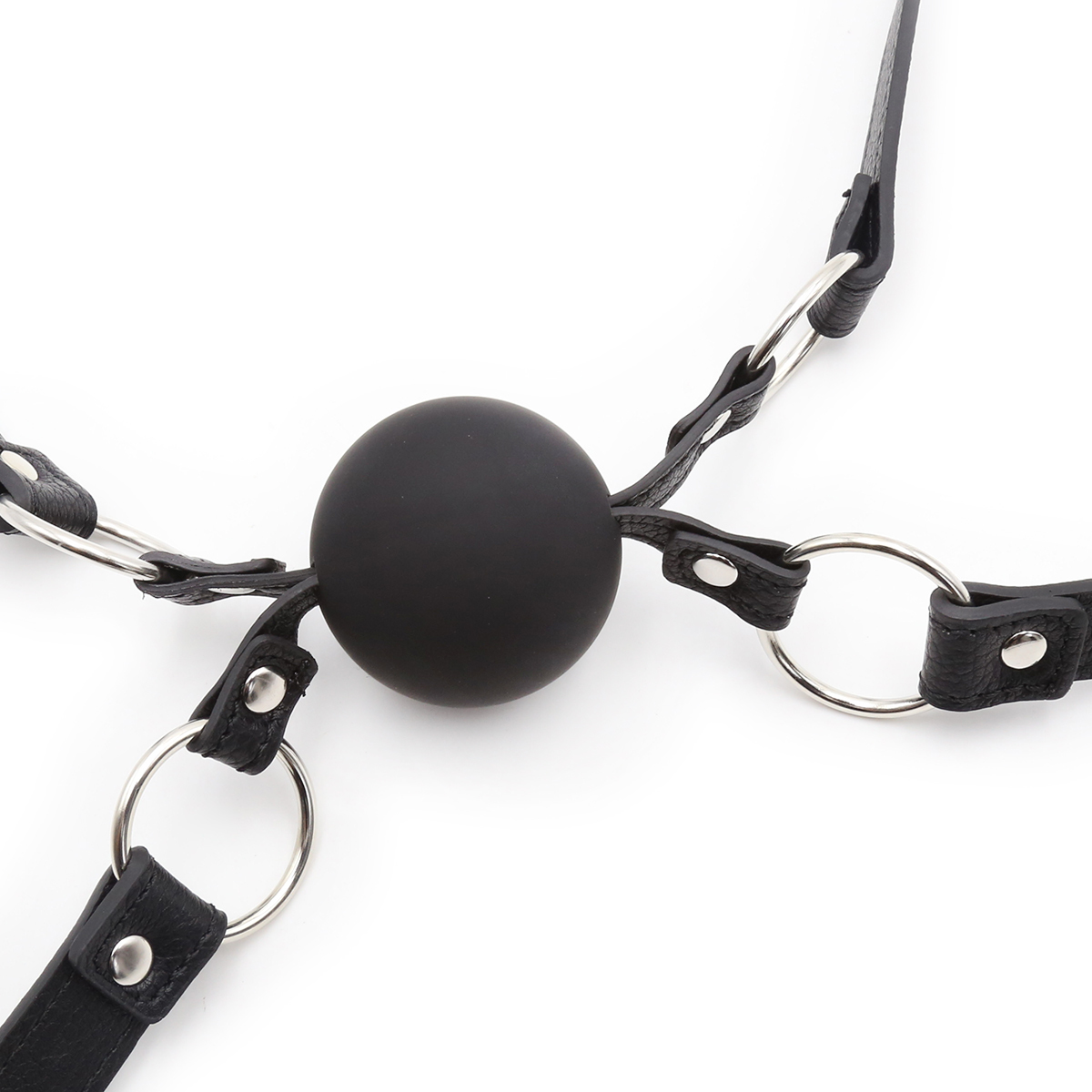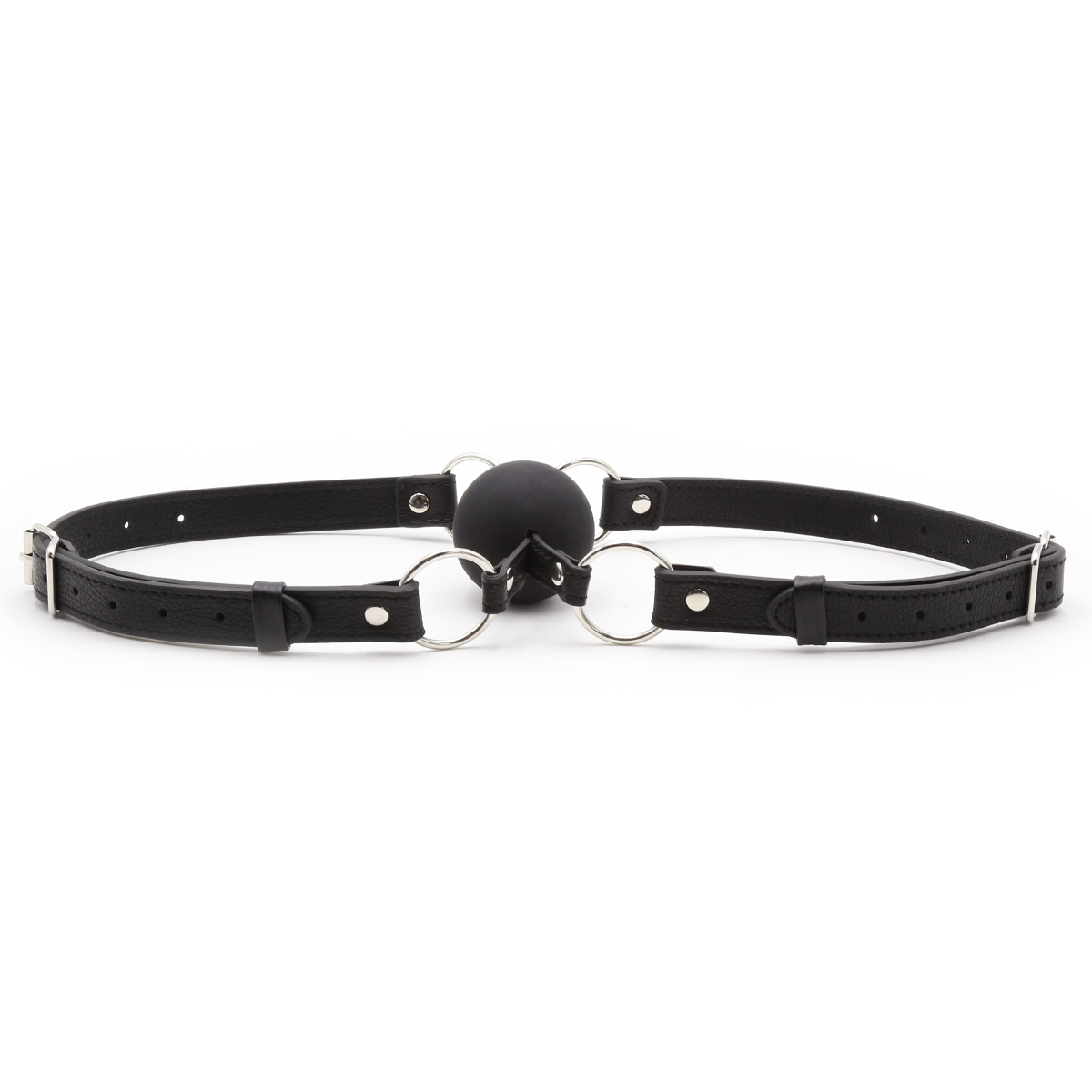 Give your playthings some one-on-one time with a ball gag that puts them face-to-face! This dual mouth gag is intimately sensual, with just one ball for your submissives to share. The double strap design wraps around both of their faces to adjust and buckle at the napes of their necks. The leather-like straps are durable, luxurious, and comfortable so that your BDSM scenes can be executed perfectly!