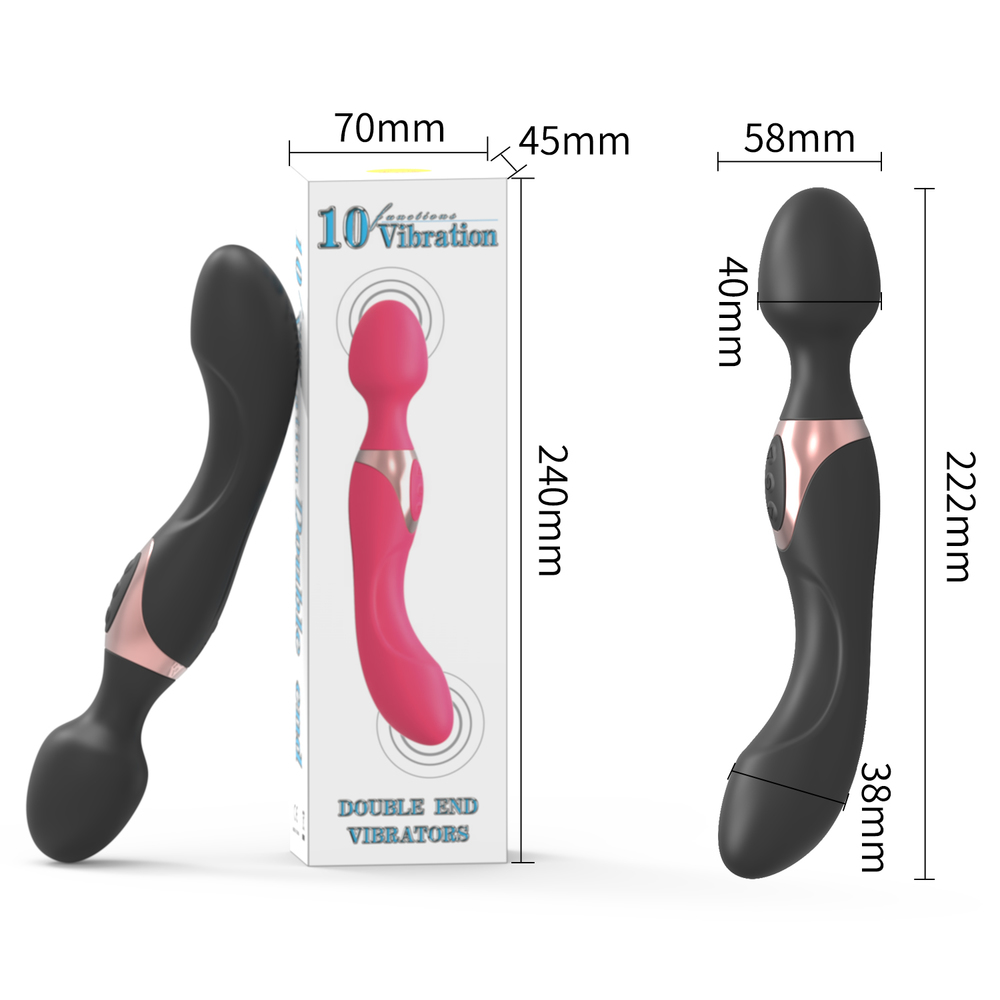 Function: 10 Frequency VibrationColor: Rose/Purple/BlackSize: 22 * 4.1 cm/8.7″ * 1.6″Power: Lithium batteryMaterial: ABS + SiliconePackage: Color BoxFurther: Waterproof, 2 Motor