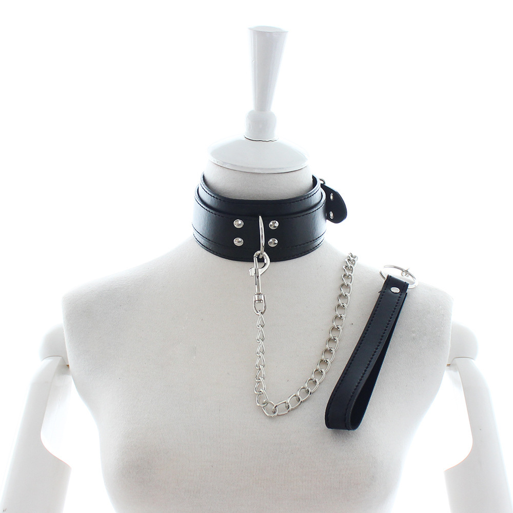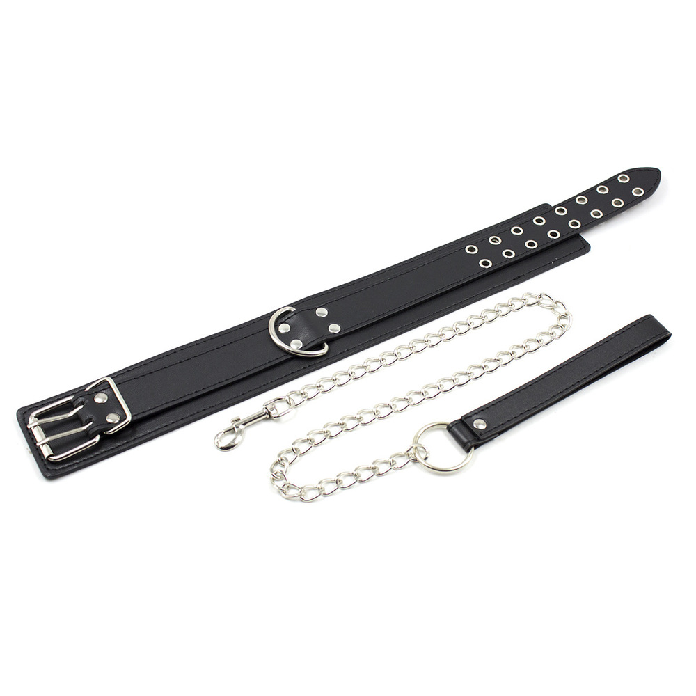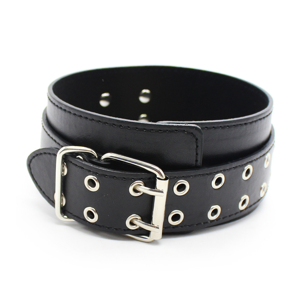 Black Leather Double Pins Buckle Collar with One D-Ring.