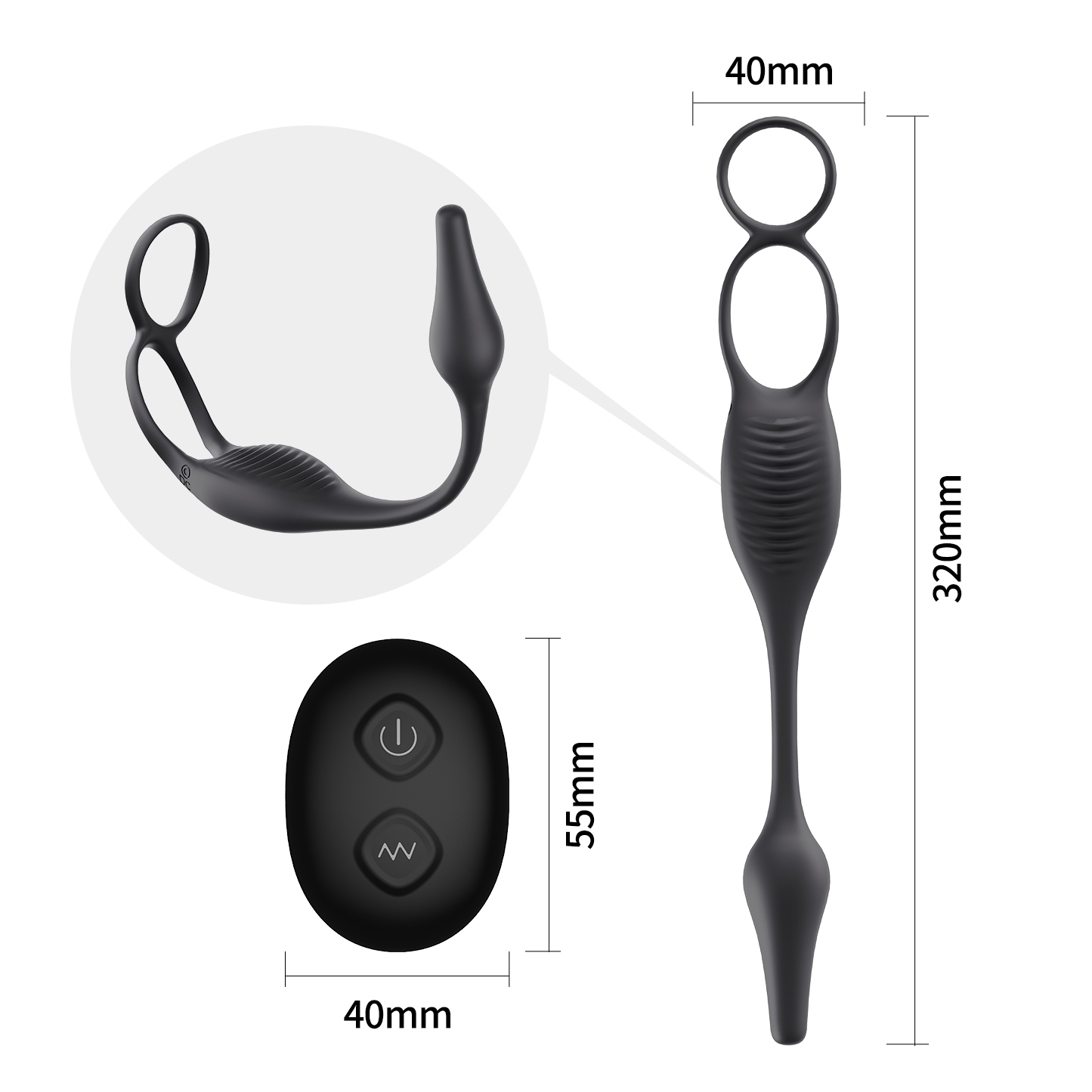 Prostate Massager Anal Vibrator Double Ring Butt Plug Wireless Remote