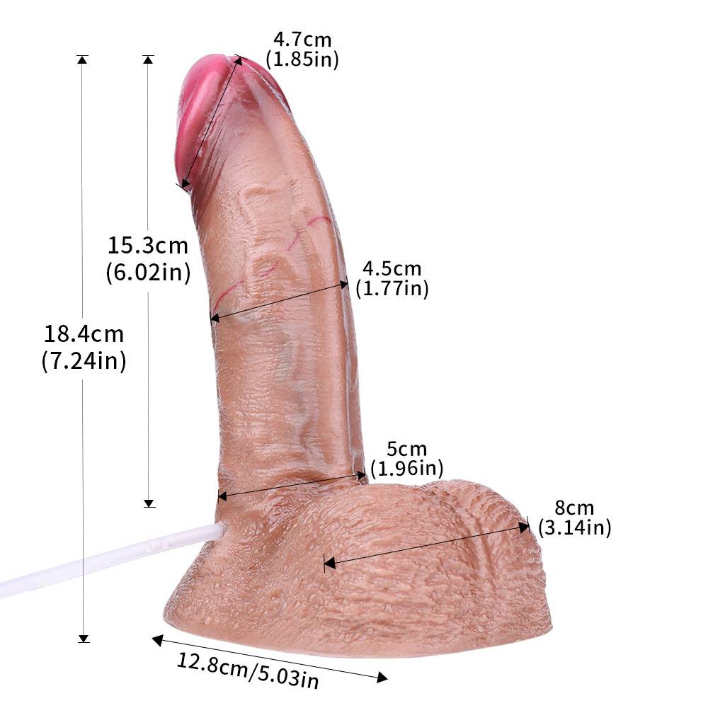 Crafted from body-safe, dual-layer silicone, this dildo is soft on the outside, firm on the inside, and completely odor-free. The realistic shape and smooth surface give you a natural feel during use, whether you’re just starting out or already experienced.Want to turn up the fun? This dildo includes a built-in squirting function that lets you simulate ejaculation. Fill it with your favorite fluid and enjoy a surprise climax that adds realism to every session.Function: Realistic Veiny Ejaculating DildoColor: FleshSize: 18.4 * 4.7 cm/7.25 * 1.85 inchInsert Length:15.3 cm/6.03 inchNet Weight: 560 g/1.23 lb/19.75 ozAir Bag: 30 mlSyringe: 100 mlPower: NoMaterial: SiliconePackage: OPP BagFurther: Soft/Non-toxic