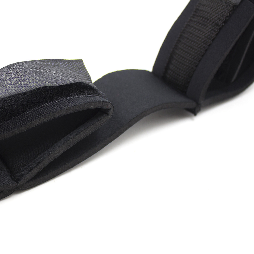 This device makes doggy-style and innumerable pages of the Kama Sutra even sexier. Watch your sub’s fingers claw and toes curl as they are spread and exposed for easy access. The external nylon, reinforced with an internal bar, is sturdy enough to keep your sub from moving out of your intended position. The neoprene inside the cuffs is comfortable enough that you could keep them trapped and at your disposal for hours. The ankles are spread 16″ apart and the wrist are 9″ apart, a perfect distance for standing, kneeling, or being tossed around.