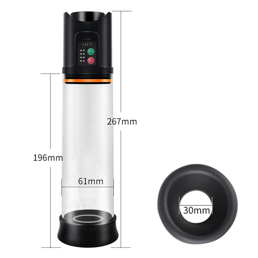 Function: 4 Suction ModesColor: Black + ClearSize: 26.7 * 6.1 cm/10.5 ?* 2.4 inchInsert: 19.6 cm/7.7 inchNet Weight: 345 g/0.52 lb/8.3 ozPower: Lithium batteryMaterial: ABS + TPEPackage: Color BoxPackage Size: 29*7.7*7.7 CM