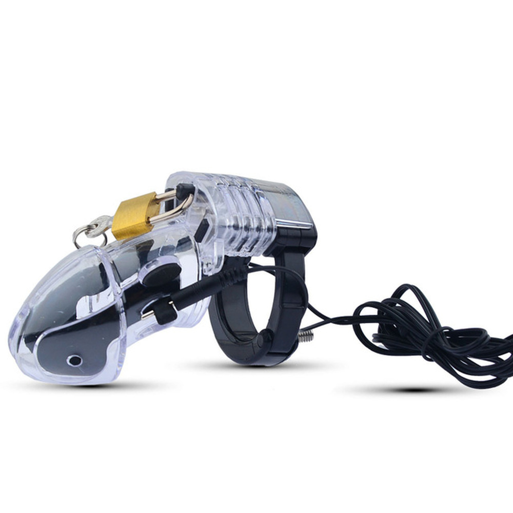 Take your chastity play up a notch with the new Pubic Enemy Number 1 Electro Cock Cage. This transparent device has 100% medical grade platinum silicone conductors inside the head cage so you can give your sub a nice jolt when he gets out of line. Chastity play has never been more devious than this!?Designed to fit a wide variety of guys. Included spacers allow you to adjust this piece to four different lengths. Can be used with or without the electrical connection so you can keep him locked up for days and only give him the electric shock when he starts to get too cocky.?Measurements:?The Cage:Inner diameter: 34 mm at the mouth, 47 mm at the widest pointLength: 82 mm; can be increased with the 3 spacers included in the delivery. Each spacer adds 4 mm.?The Clasp:Inner diameter is variable in 6 steps from 33 mm to 52 mm?Compatible with Zeus power boxes (sold separately)
