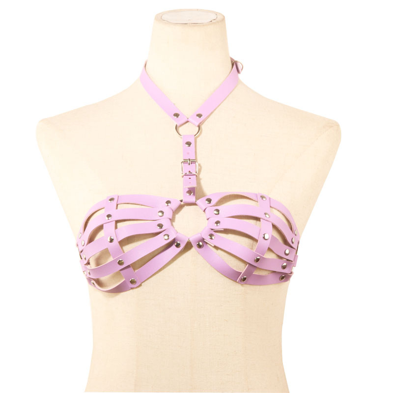 Women’s Gothic bra belt made of leather straps has iron rivets, size clips and is made in the Gothic style. A garter belt for girls will make any owner more confident and will not leave her without male attention?Color: Black/White/Red/Blue/Pink/Light Purple/Brown/ClaretMaterial: PU+AlloySizing Chart: One sizePackage: OPP Bag