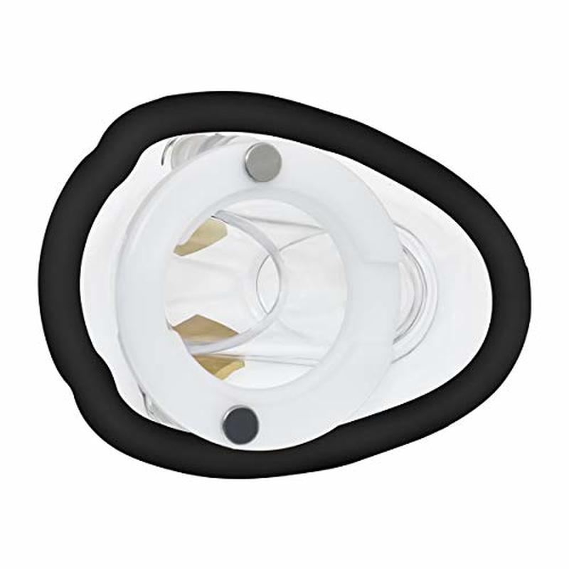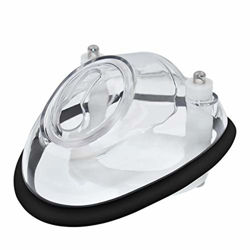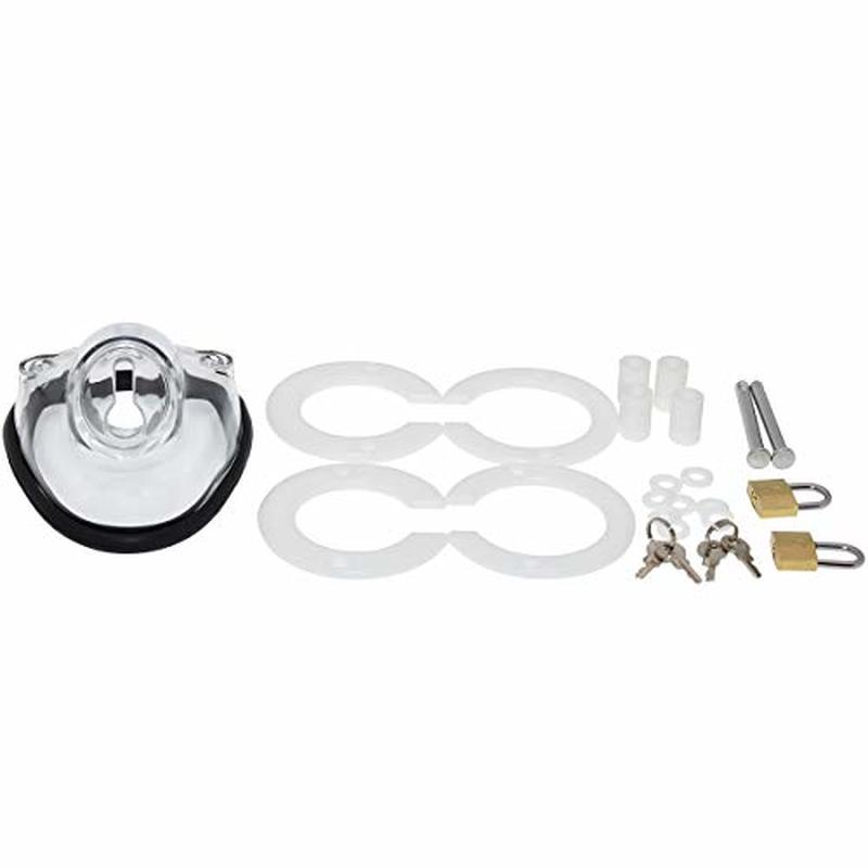 It features a crystal clear cage with a slot allowing urine to flow. This innovative chastity device is secured in place with two padlocks for added security.