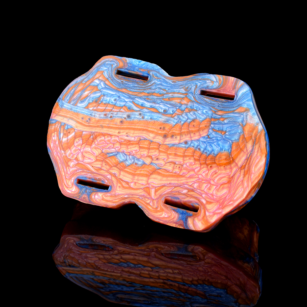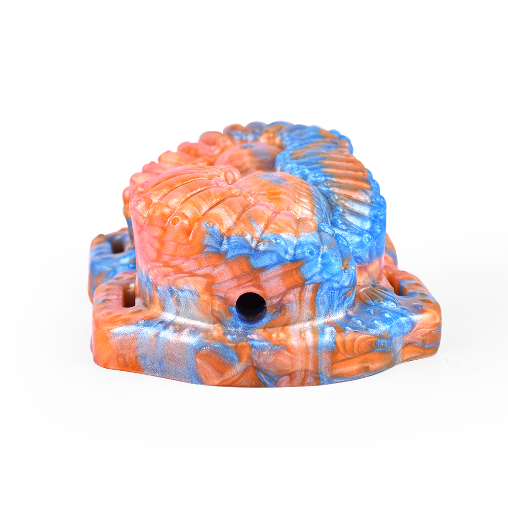 Inspired by the fierce serpent folk warriors this toothy maw features a deeply ridged and flared tongue, meeting an open gaping mouth at the base.