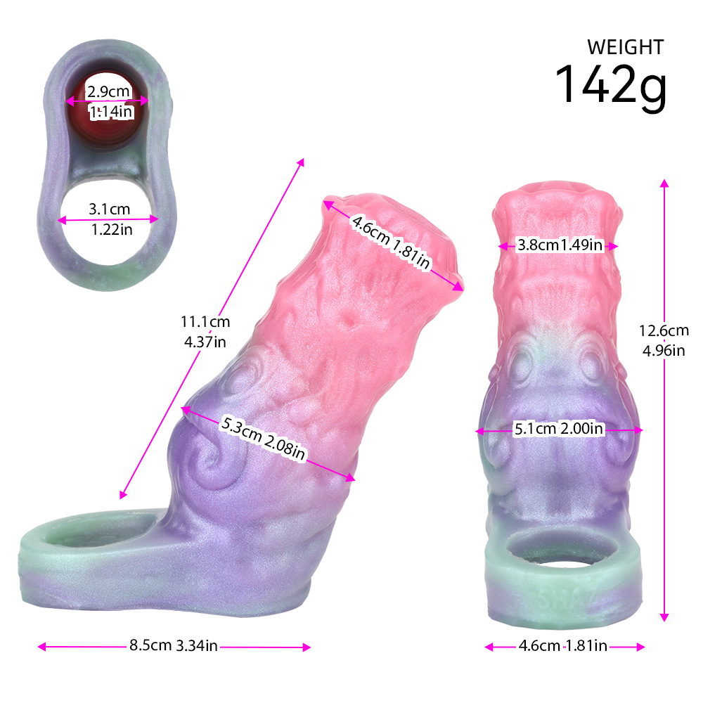 Function: Girth Reusable Condom Extender for MenColor: ColorfulSize: 12.6 * 5.1 cm/4.96 * 2.01 inchInsert Length:11.1 cm/4.37 inchNet Weight: 142 g/0.31 lb/5.01 ozPower: NoMaterial: SiliconePackage: OPP BagFurther: Soft/Non-toxic