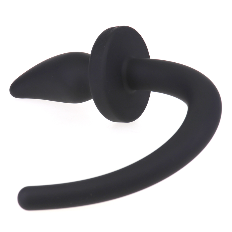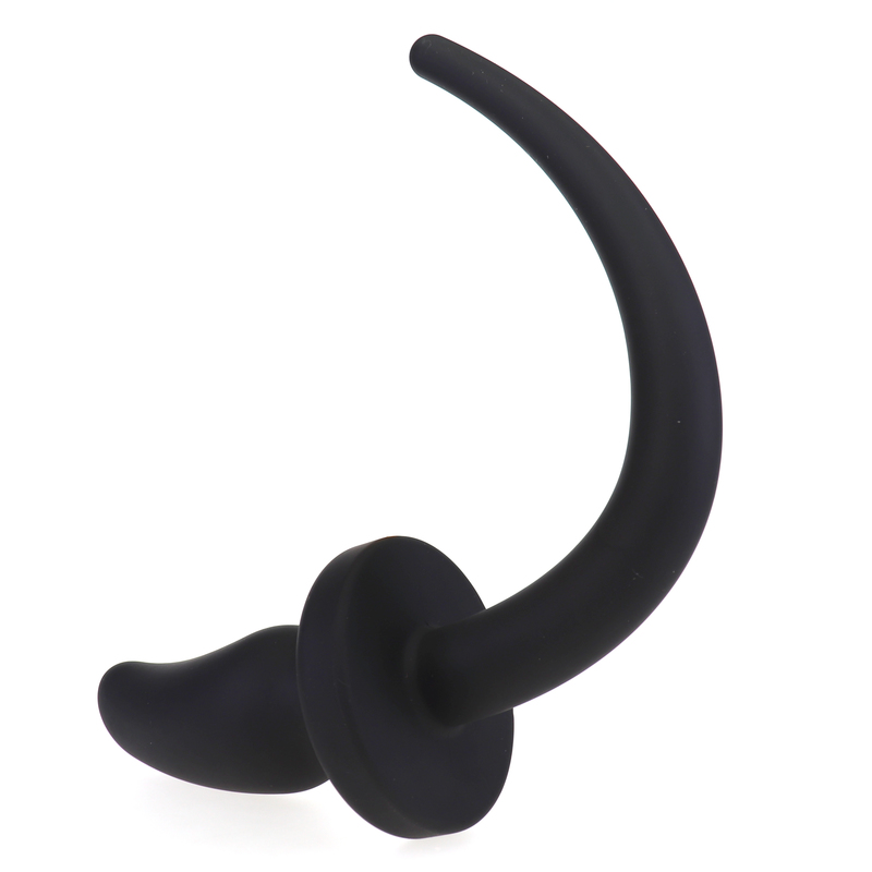 Silicone butt plug with curved end and dog tail. The curved end is perfect for stimulating the prostate while wearing it. A tail is attached to the butt plug that looks like a dog’s tail. Ideal during role-play! The flat base of the plug makes the dog tail safe to use.